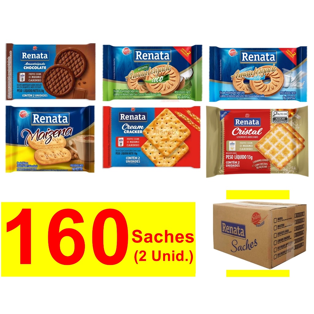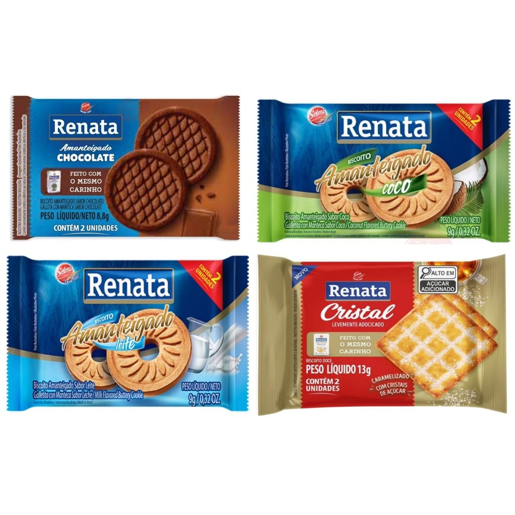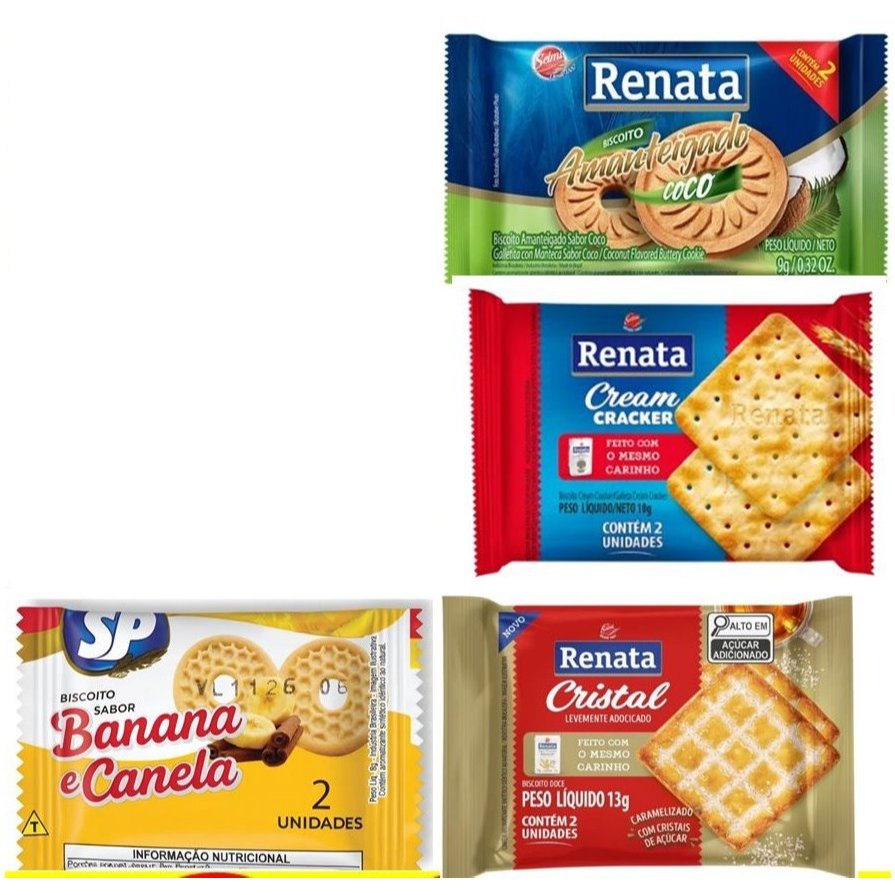 100 Sachês De Biscoito Renata Sabores Sortidos Chocolate Leite Coco Banana Capuccino
