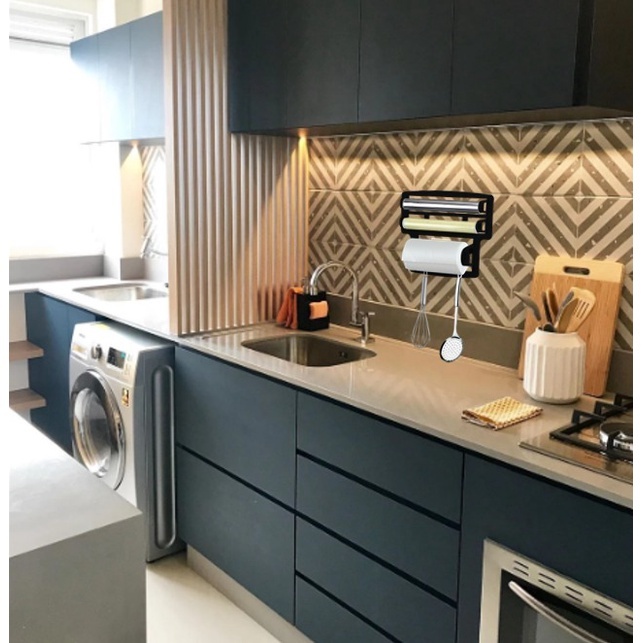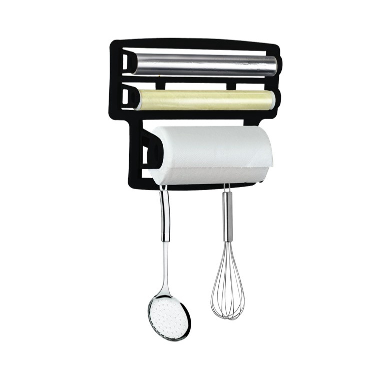 Suporte Porta Papel Toalha Triplo Suporte Preto Rolos Para Cozinha 3 em 1