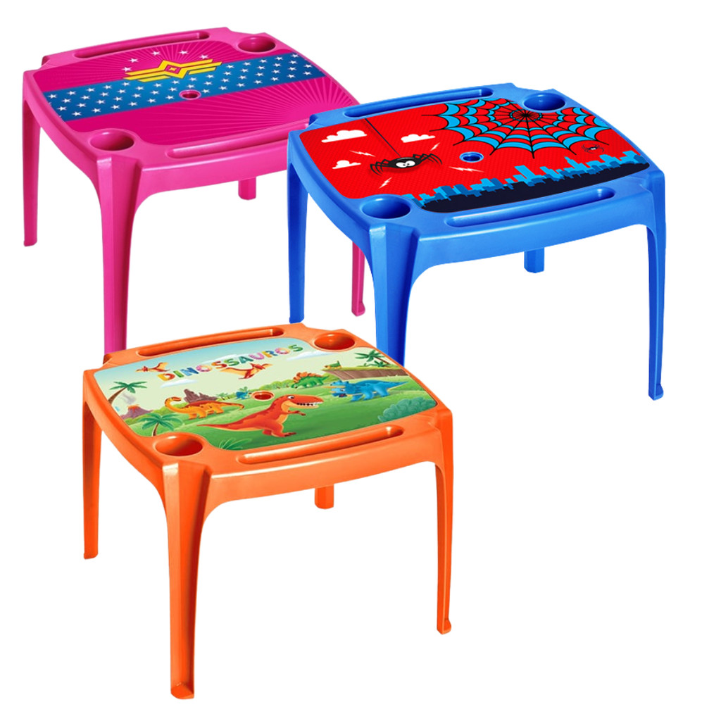 Mesa Infantil Personalizada - Homem Aranha, Mulher Maravilha & Dinossauros Label e Cadeira - Homem Aranha e Dino Label