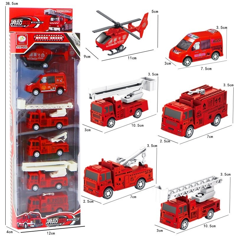 Conjunto Carrinho de Brinquedo Bombeiro 6 PÇS com fricçao