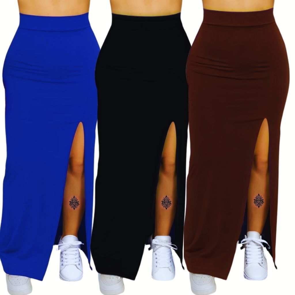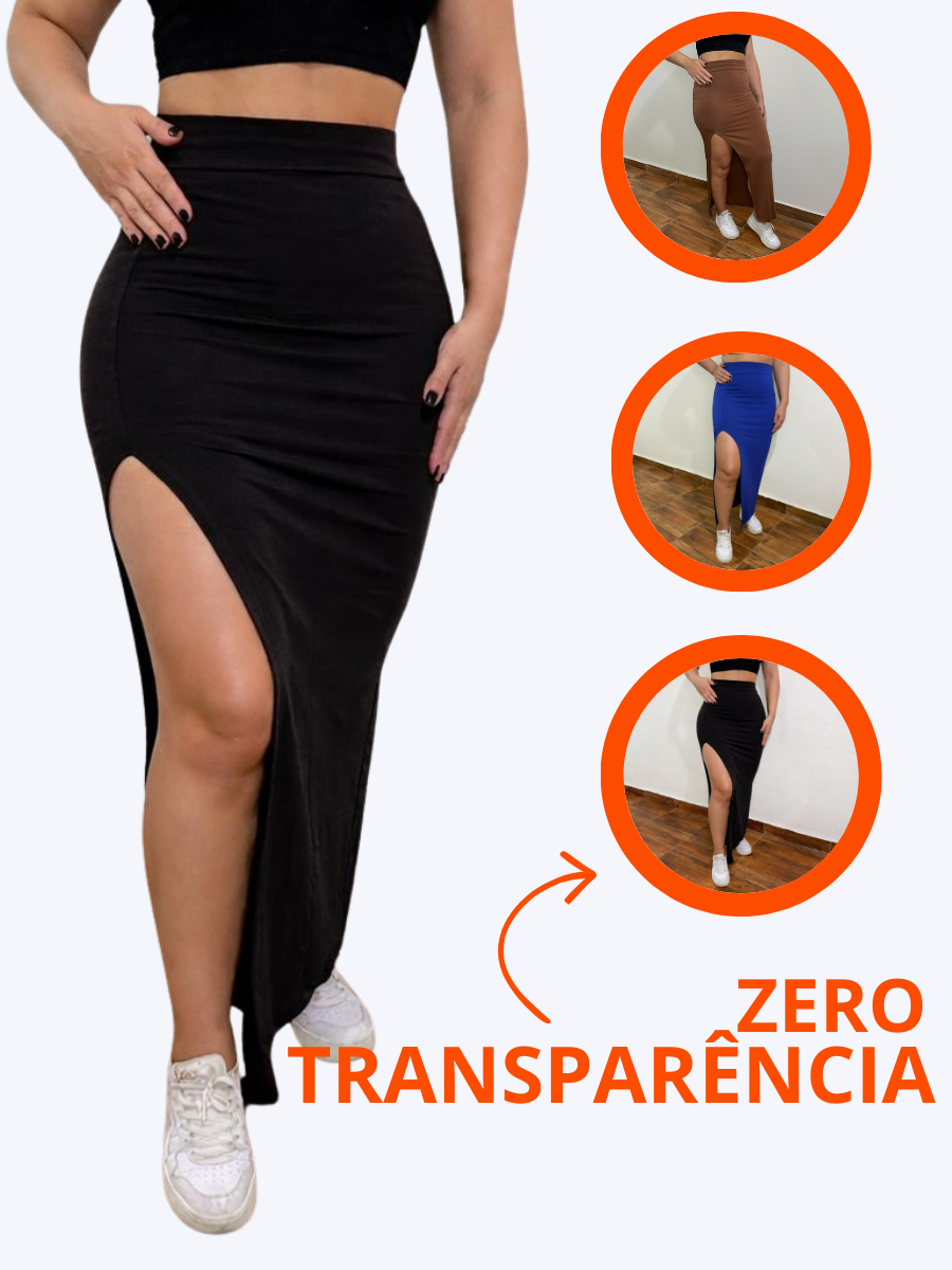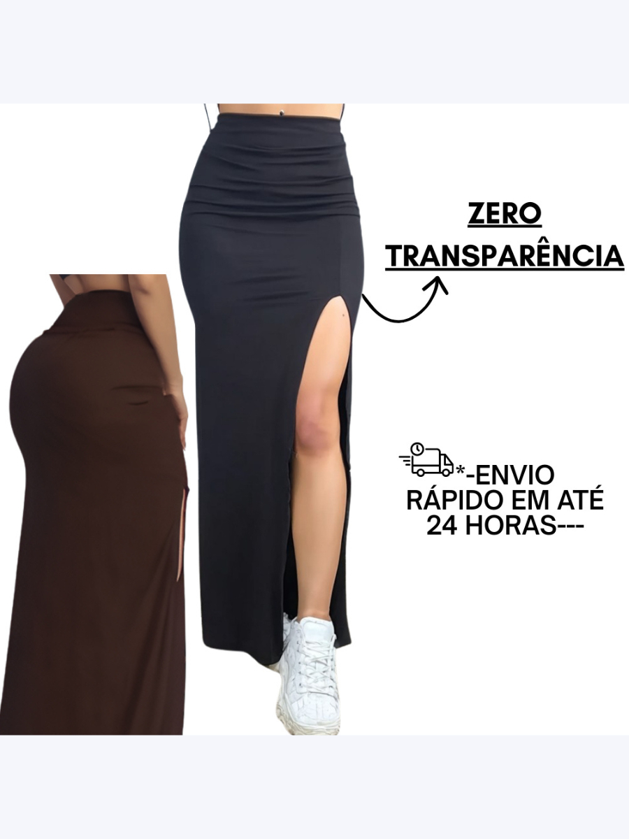 Saia Midi Feminina Longa Cintura Alta com Fenda Leve Casual Moda Verão Elegante