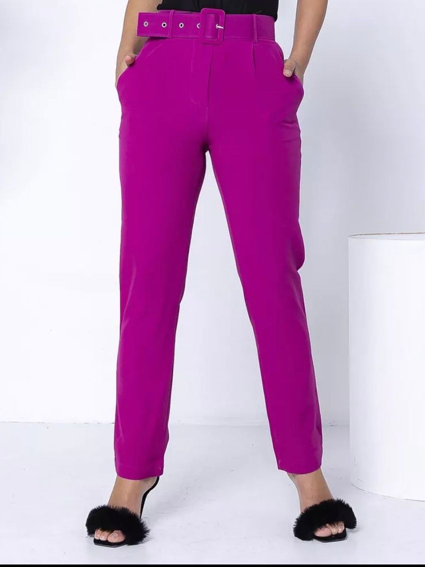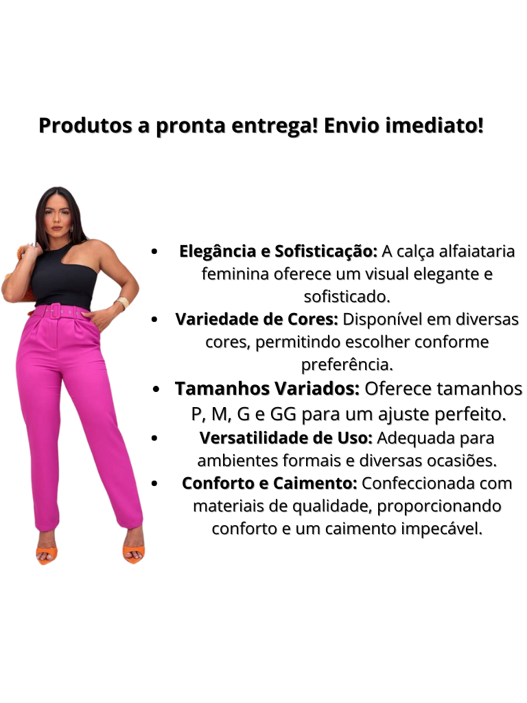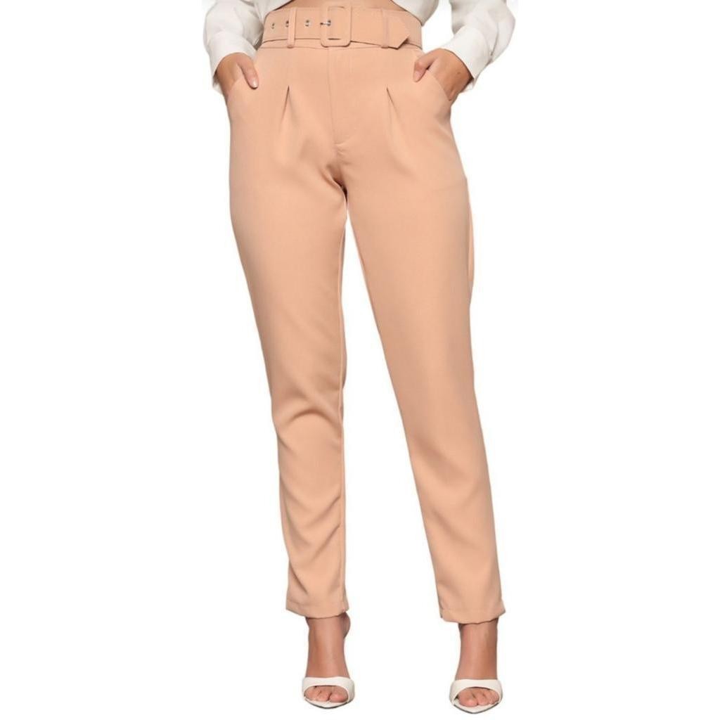 Calça Alfaiataria Feminina Social Feminino Trabalho Escritório Cintura Alta Com Cinto e Botão Encapado