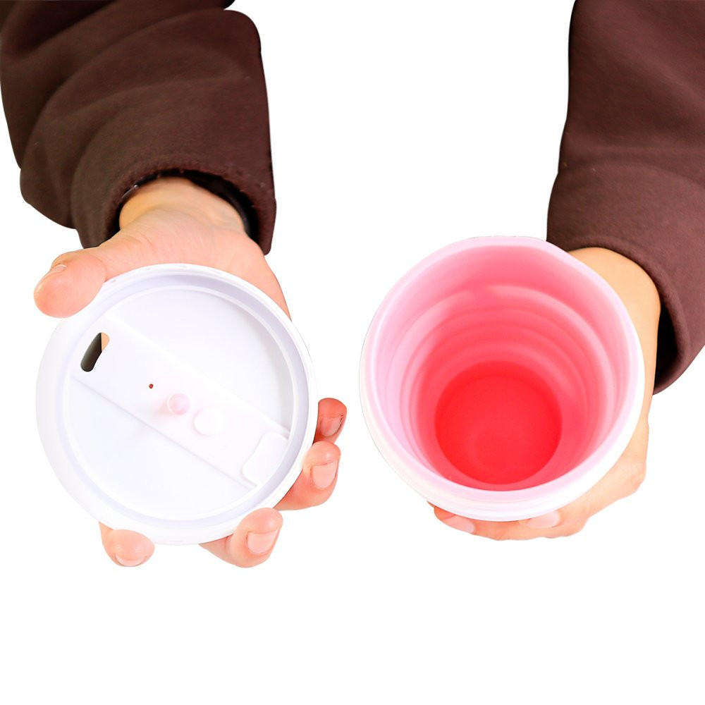 Copo Silicone Retrátil Dobrável Com Tampa Reutilizável 350ml
