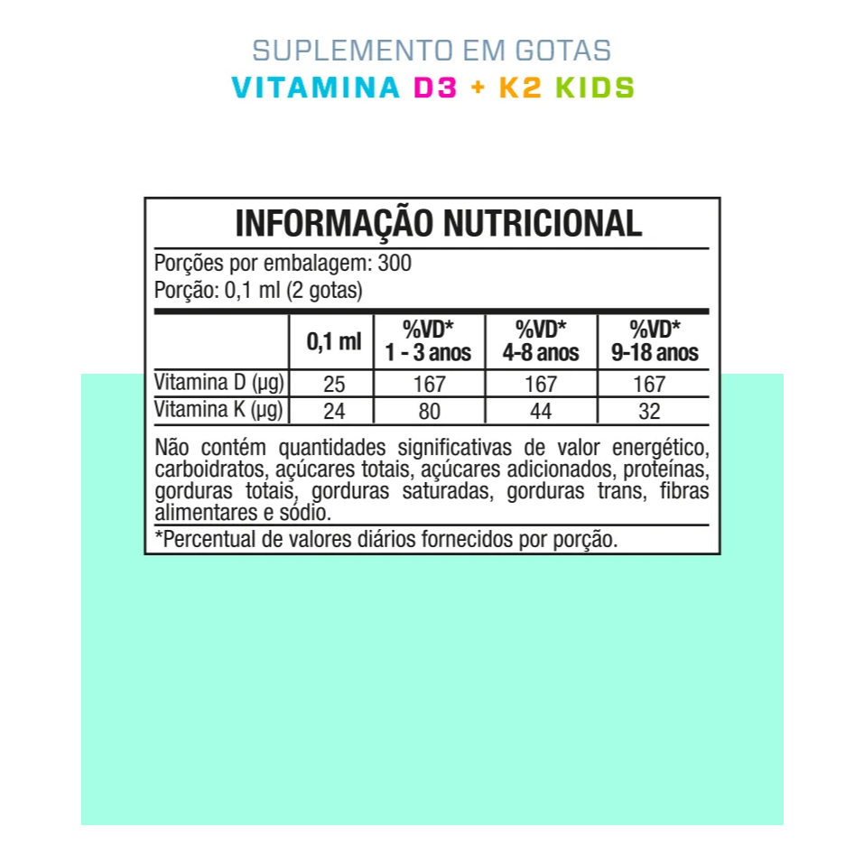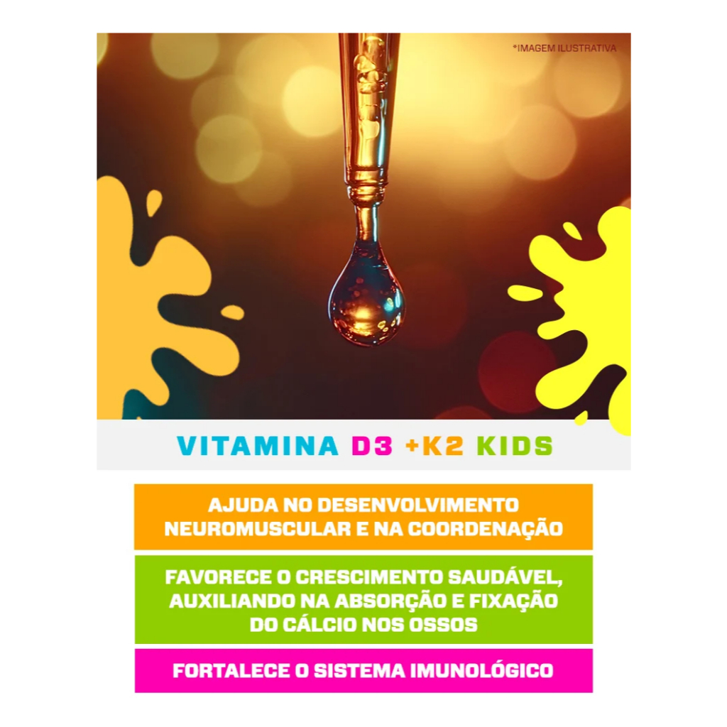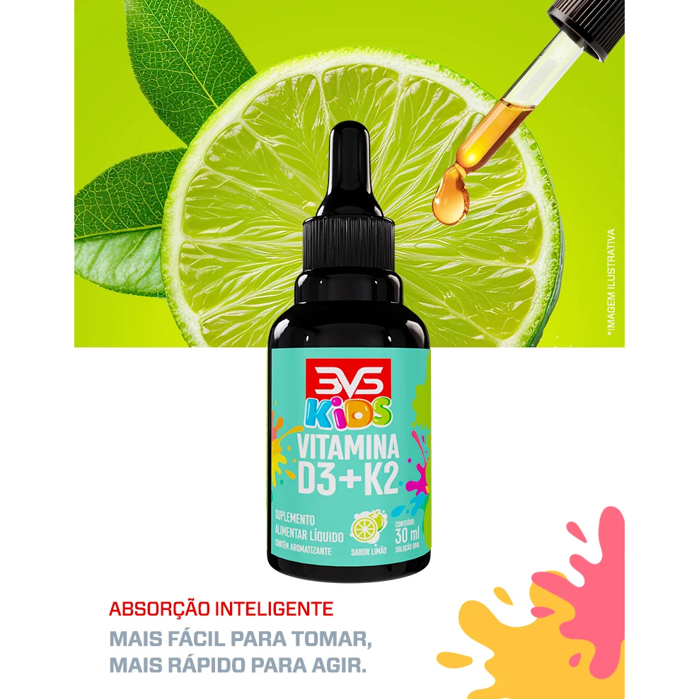 Vitamina Kids D3 + K2 Mk7 Menaquinona Com Fórmula Concentrada Em Gotas - Sabor Limão - 30ml