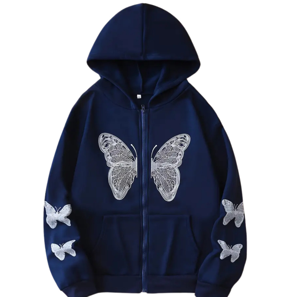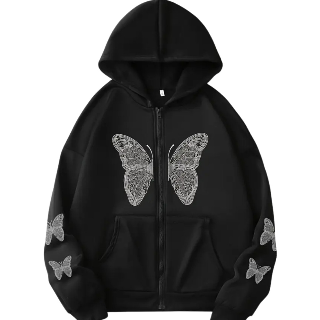 Moletom Aberto com Borboletas Zíper Estilo Coreano Estilo Tumblr Confortável
