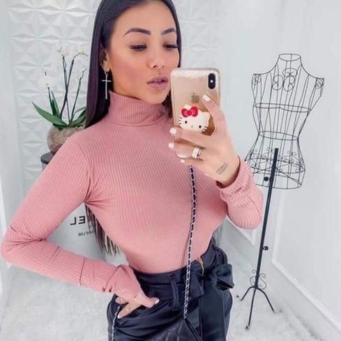 Blusa De Frio Gola Alta Manga Longa Canelada Moda Feminina