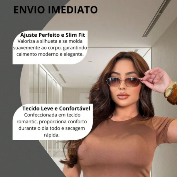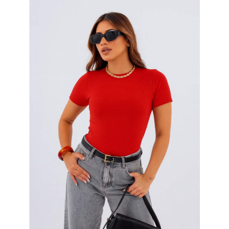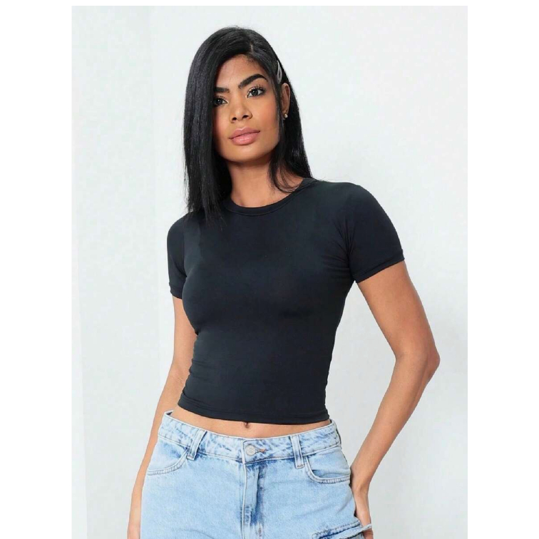 Blusa Baby Tee Feminina Manga Curta Slim Fit Tendência