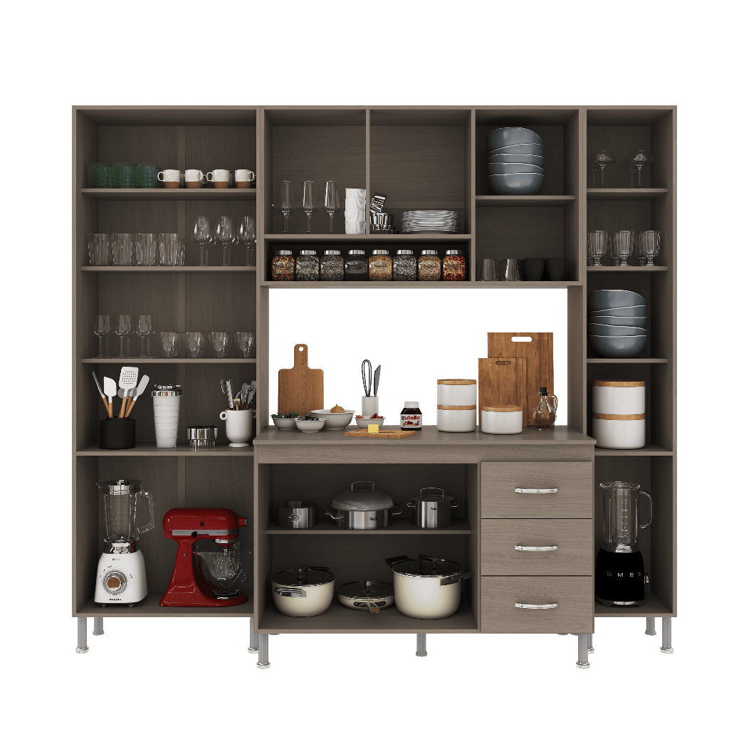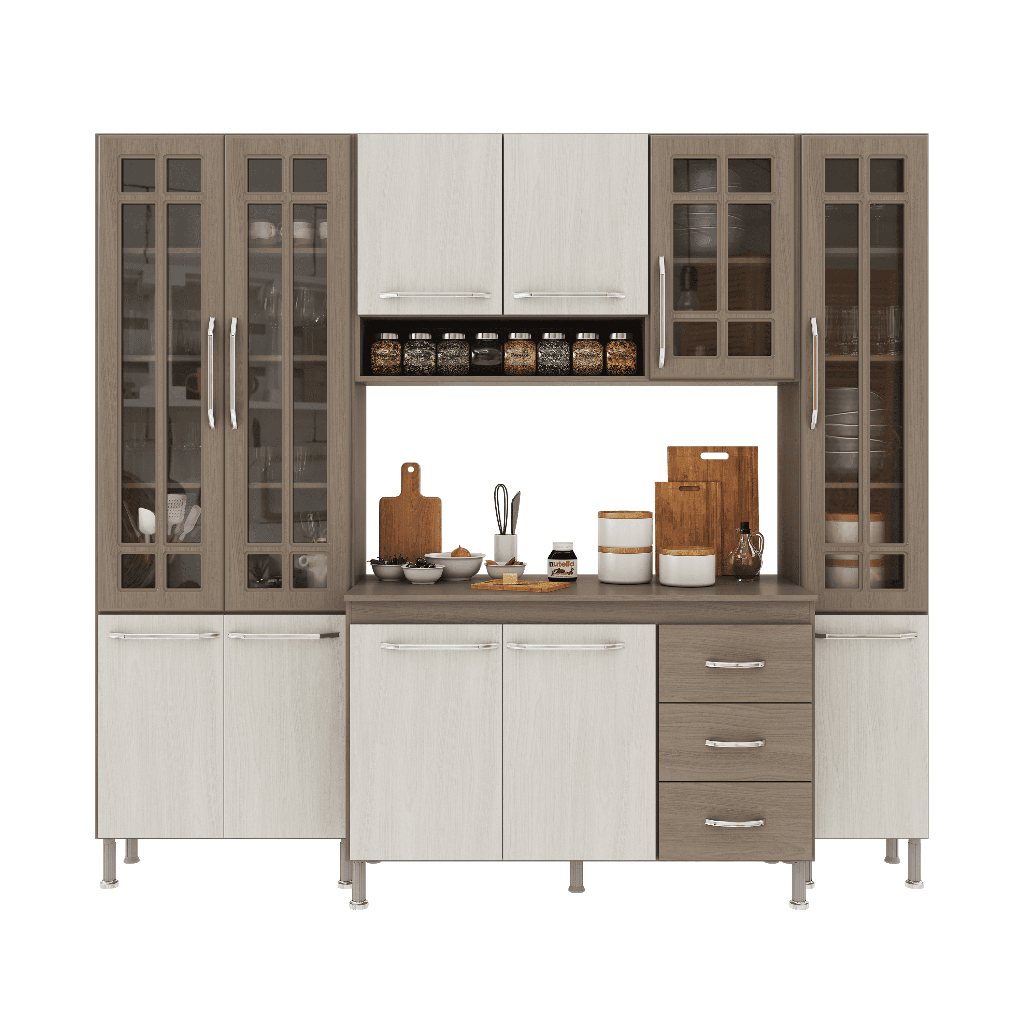 Armário de Cozinha Modulada Compacta Fidelitá Paris 4 Peças 225cm 11 Portas 3 Gavetas Com Tampo Nogal/Salinas