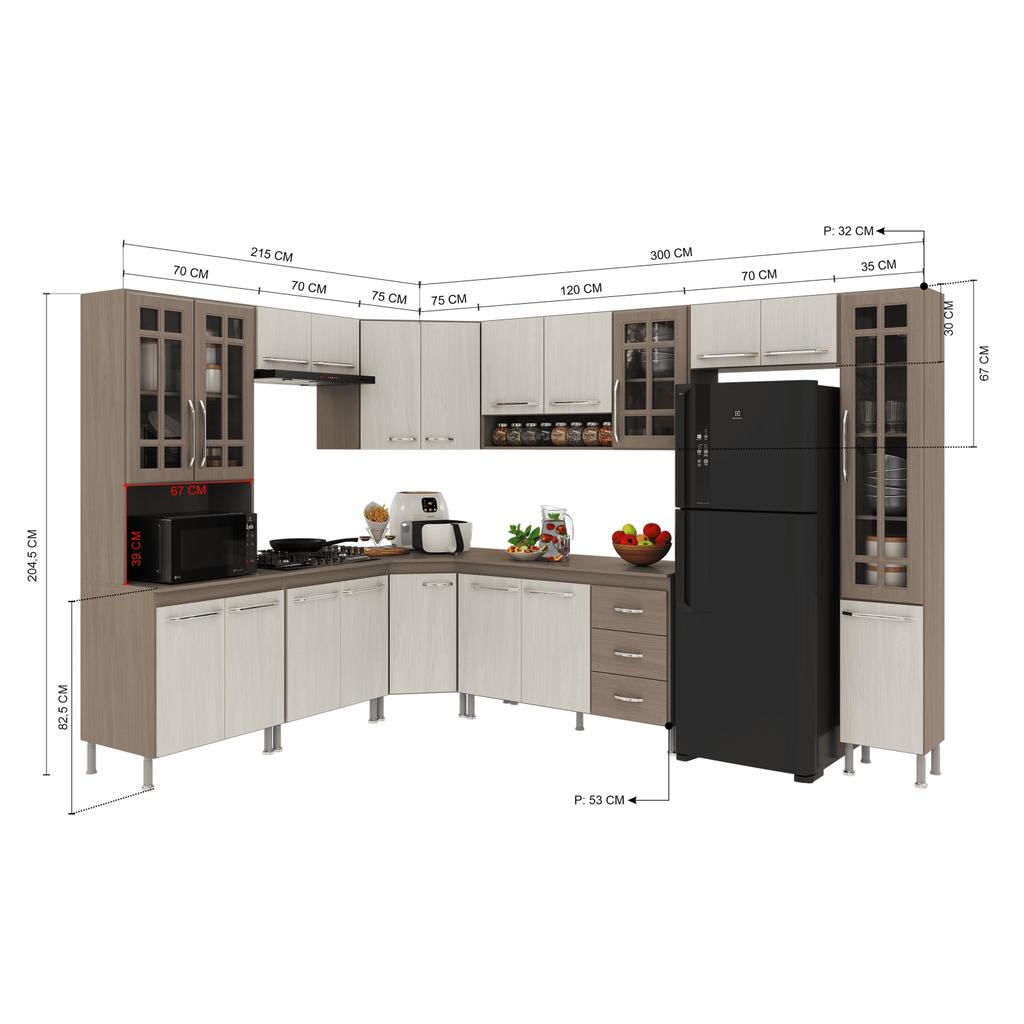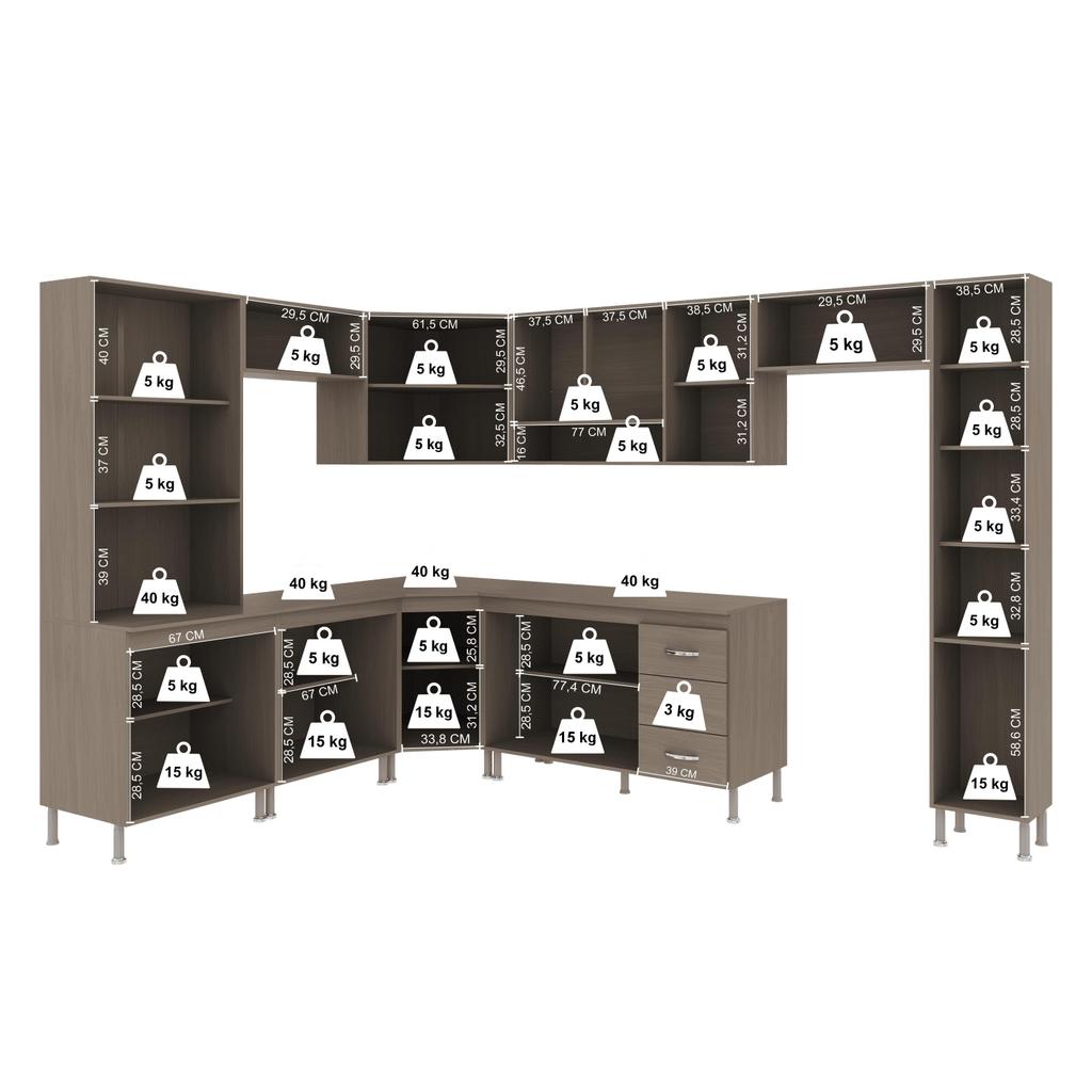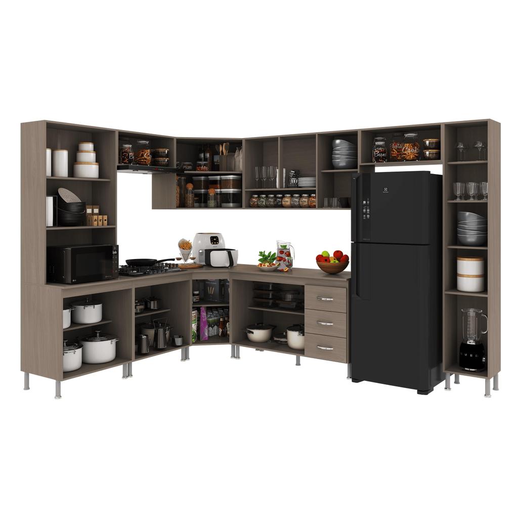 Cozinha Modulada Completa Fidelitá Paris 9 Peças 515cm 20 Portas 3 Gavetas Com Tampo Nogal/Salinas