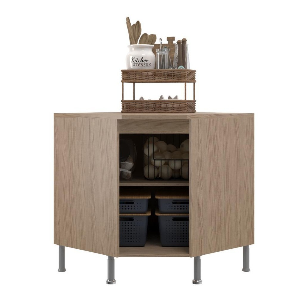Balcão Modulado De Canto Com Tampo Fidelitá Paris 75cm 1 Porta Nogal/Salinas