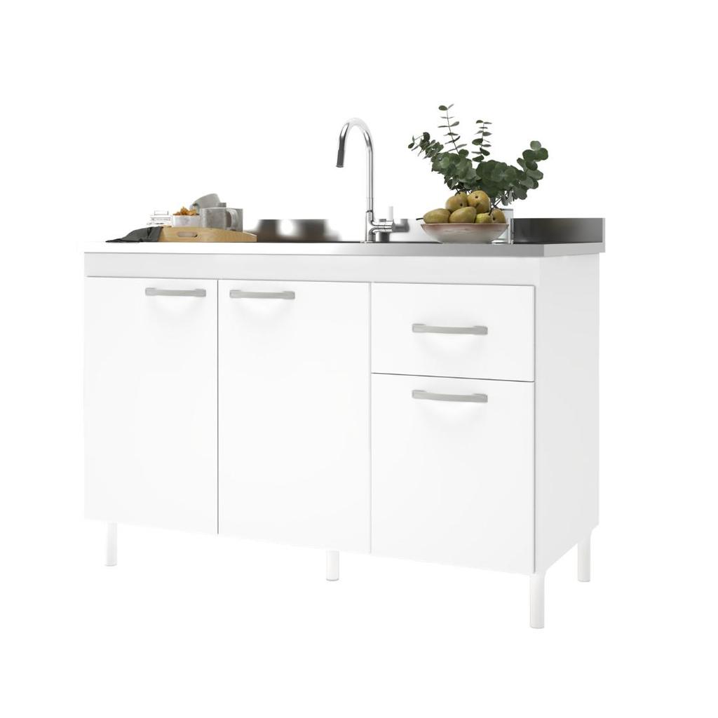 Balcão de Cozinha para Pia de 120cm Sem Tampo Suiça Fidelitá 3 Portas 1 Gaveta Branco
