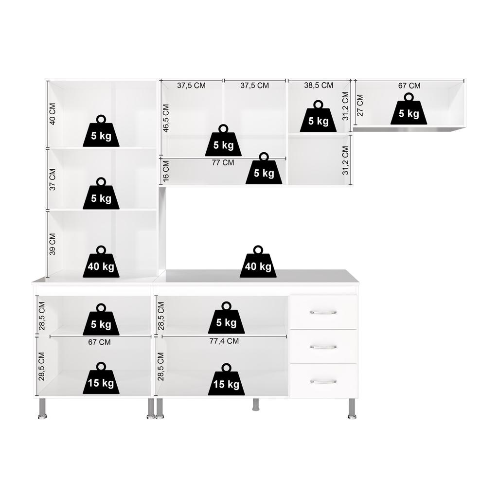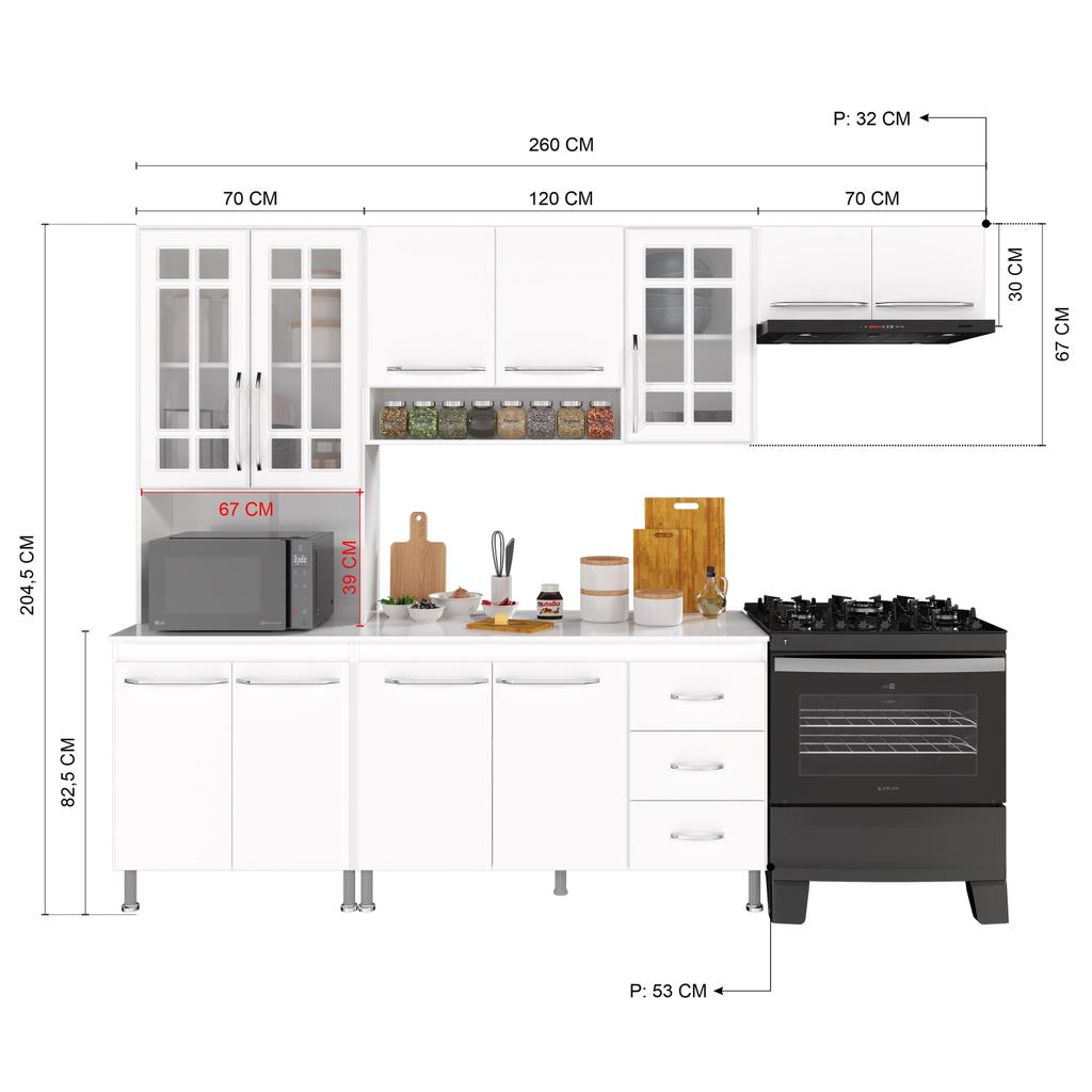 Cozinha Modulada Compacta Fidelitá Viena 4 Peças 260cm 11 Portas 3 Gavetas Com Tampo Branco