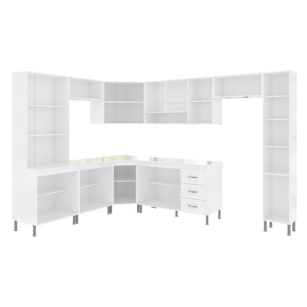 Armário de Cozinha Modulada Completa Fidelitá Viena 9 Peças 515cm 20 Portas 3 Gavetas Com Tampo Branco
