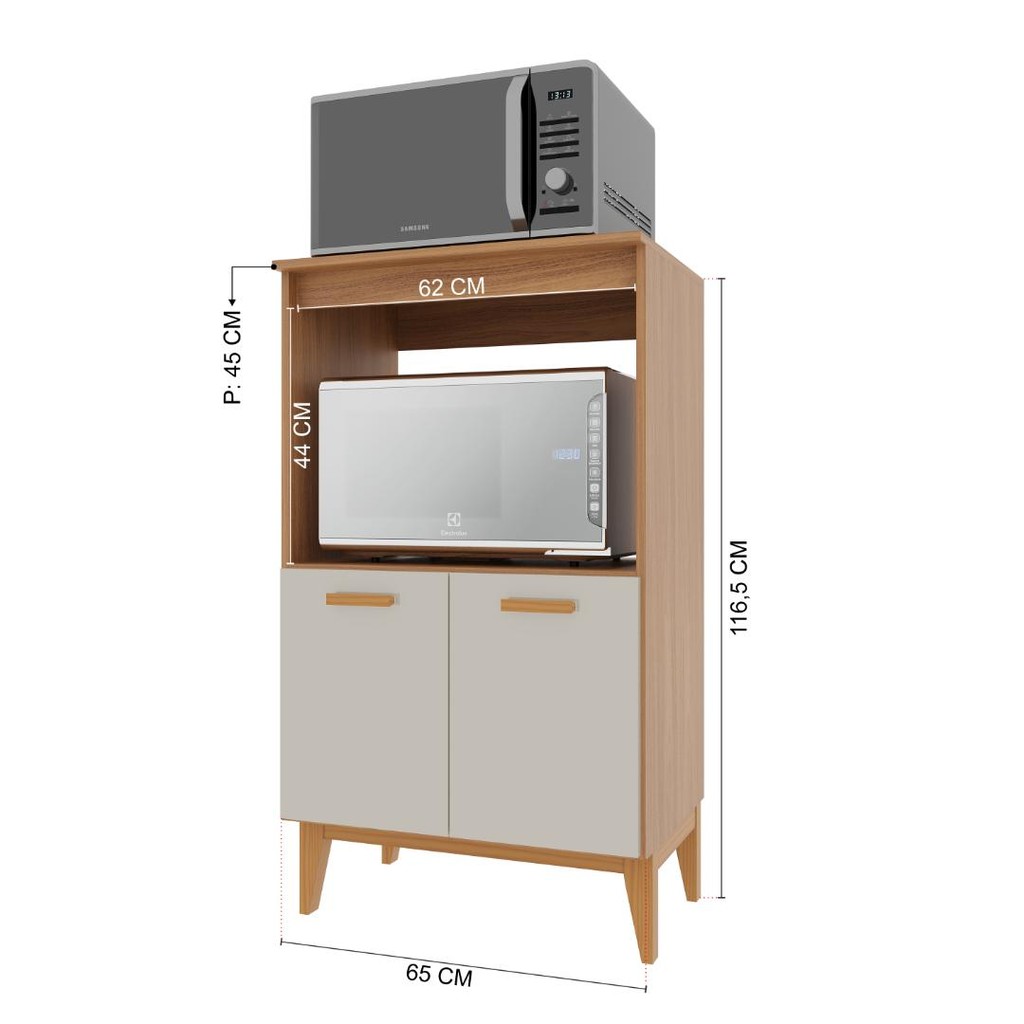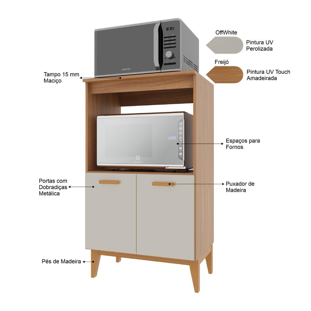 Balcão de Cozinha Modulado para Forno e Microondas Fidelitá Atenas 65cm 2 Portas Freijó/Off-White