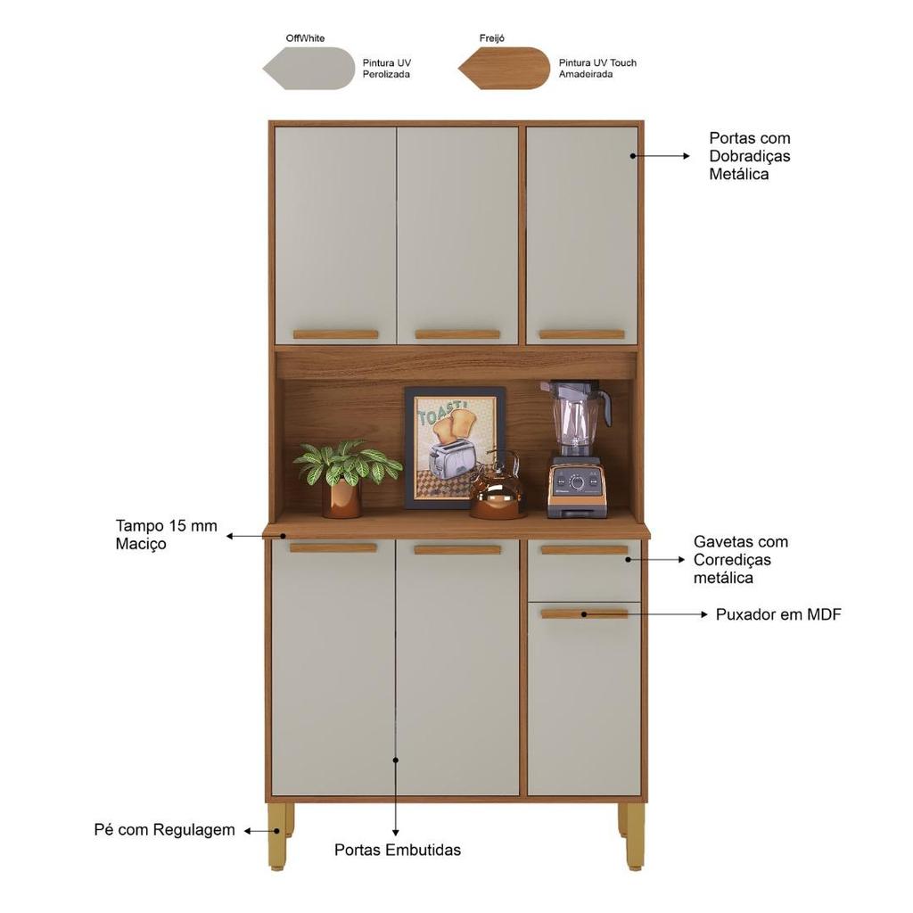 Armário De Cozinha Compacta Fidelitá Bari 90cm 6 Portas 1 Gaveta Com Tampo e Fundo Freijó/Off-White