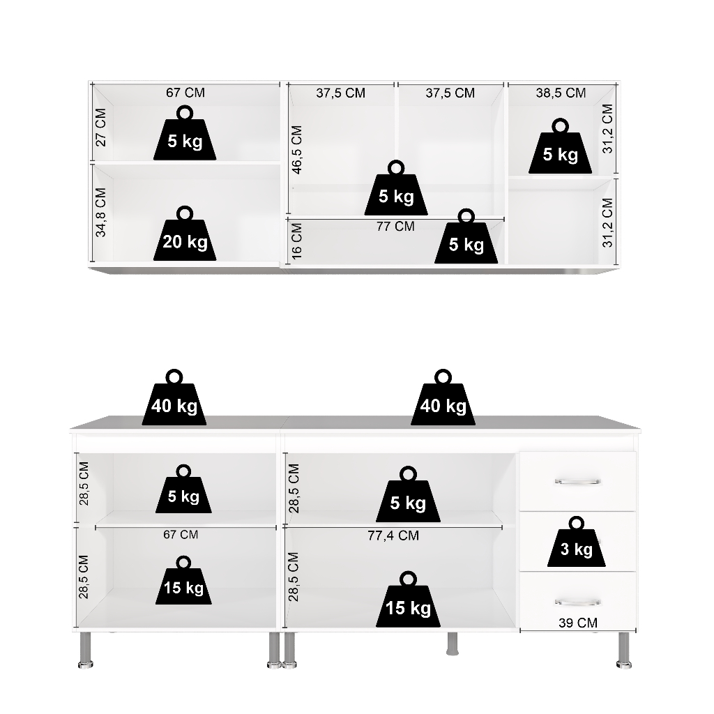 Armário de Cozinha Modulada Compacta Fidelitá Viena 4 Peças 190cm 9 Portas 3 Gavetas Com Tampo Branco