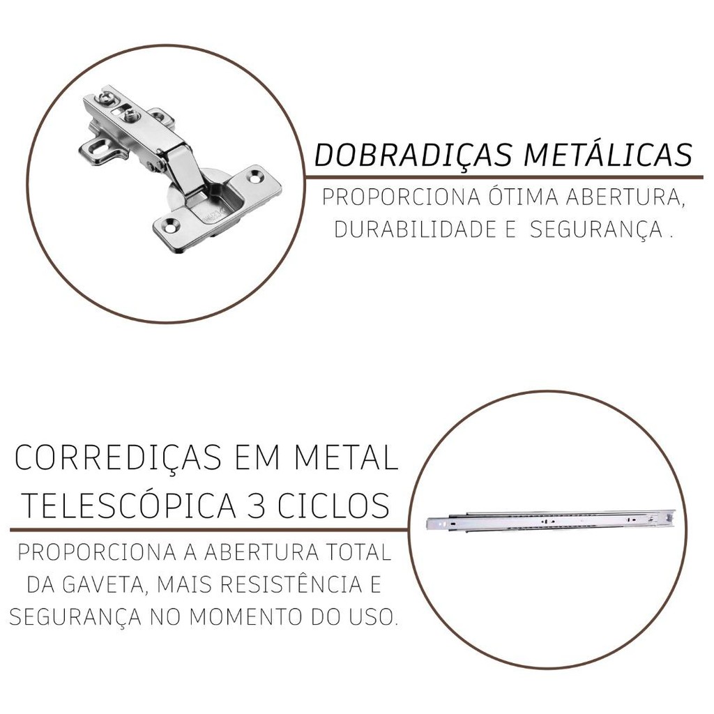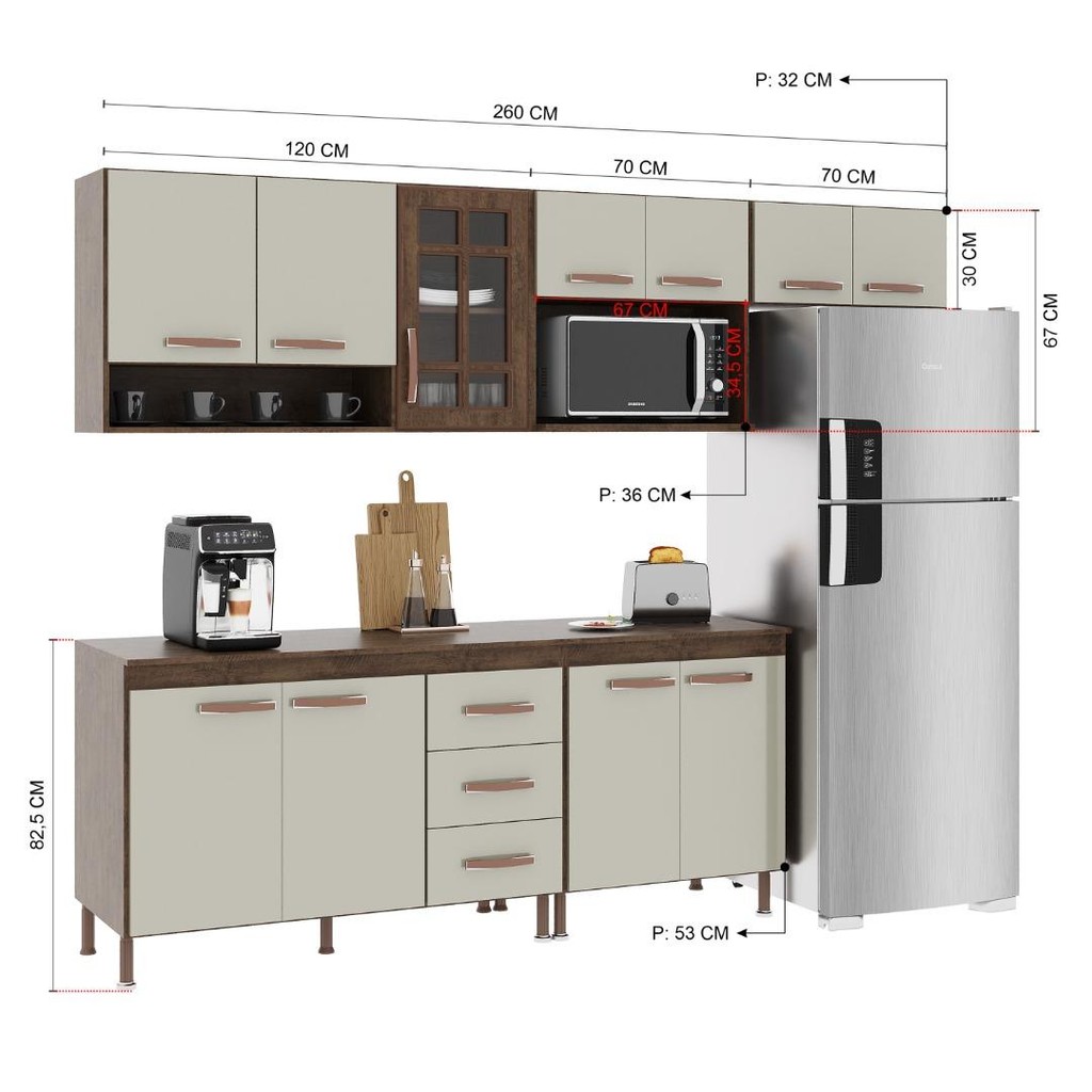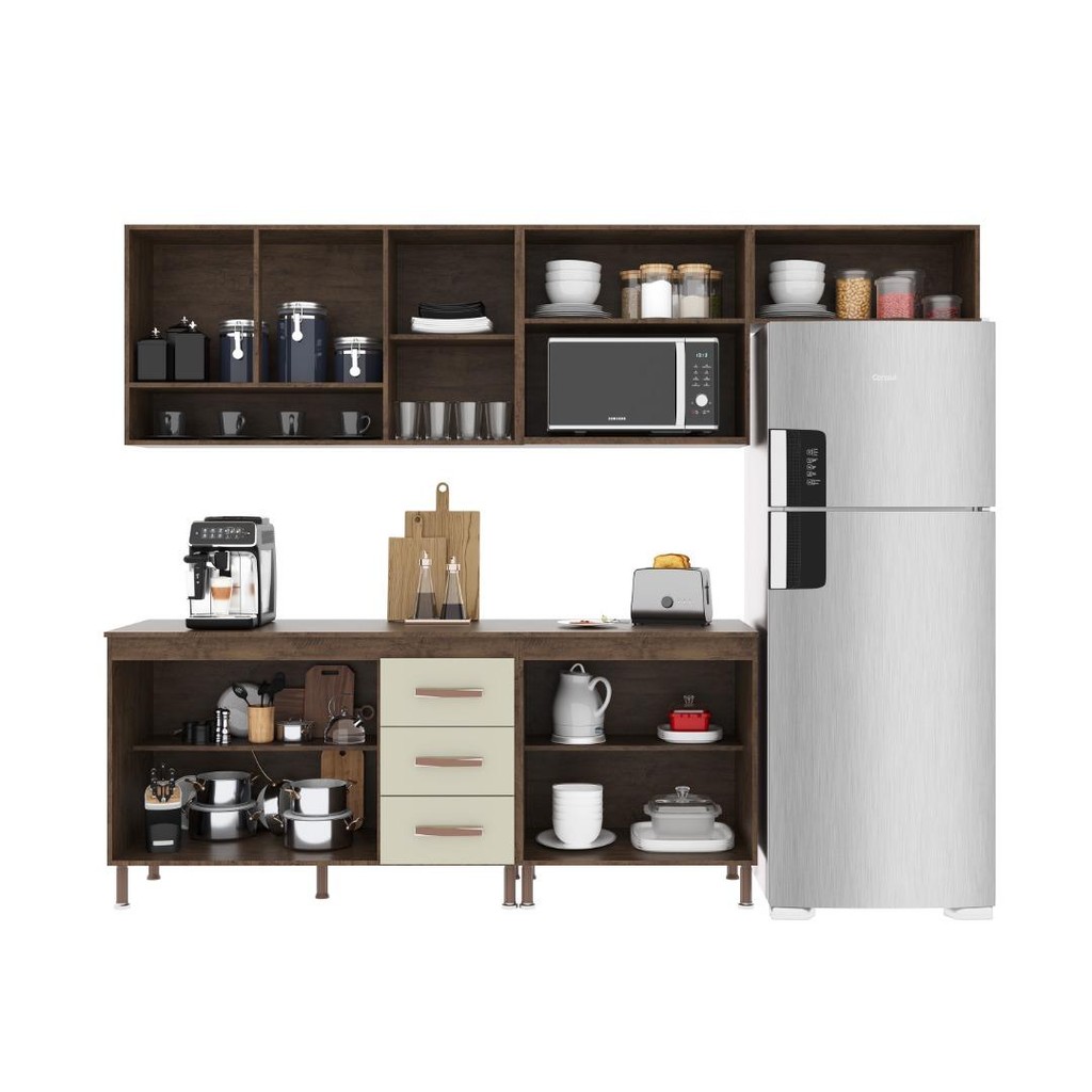 Cozinha Modulada Completa Fidelitá Lisboa 5 Peças 260cm 11 Portas 3 Gavetas Com Tampo Noce/Off-White
