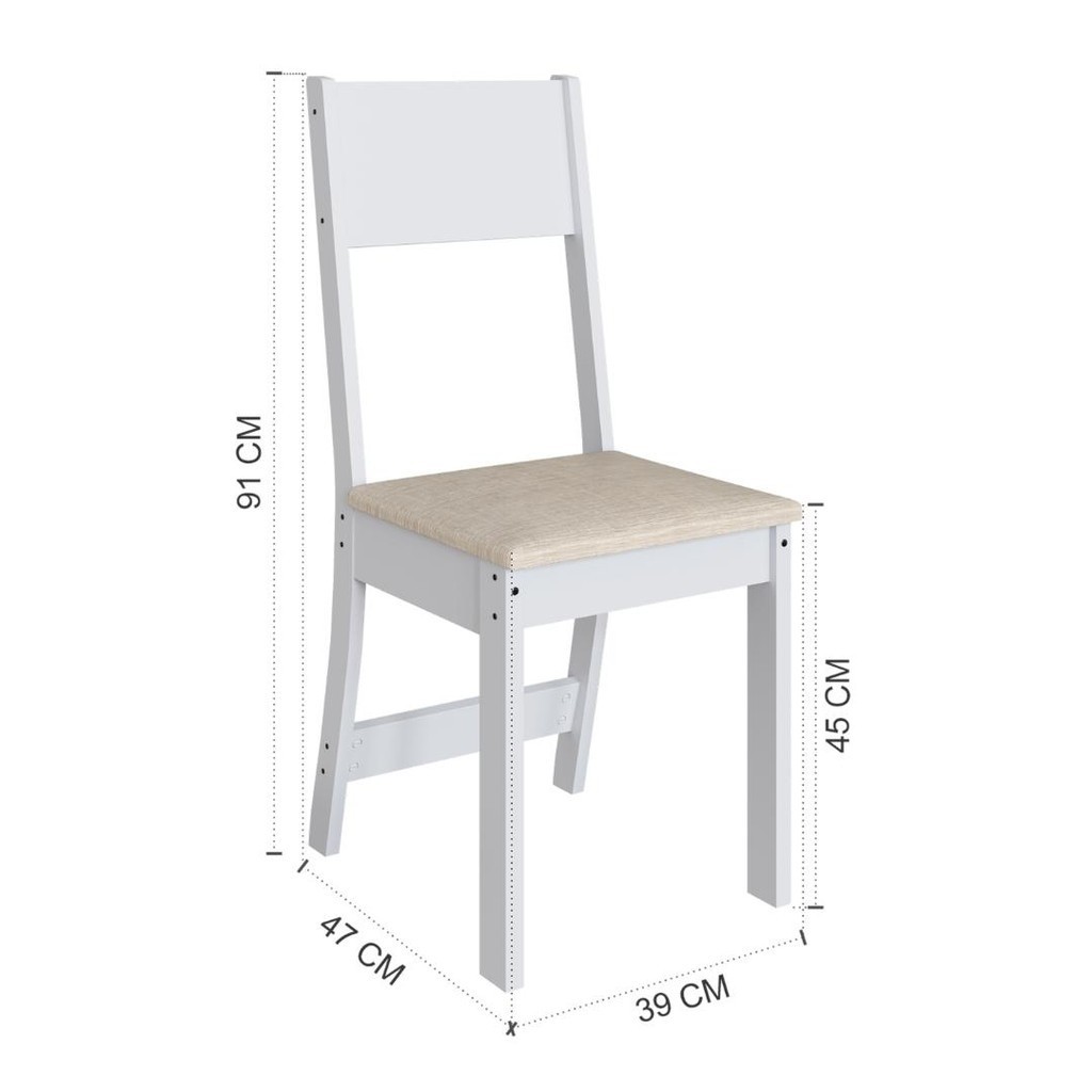 Conjunto Sala de Jantar Mesa Fidelitá Siena Com 4 Cadeiras Branco Assento Linho