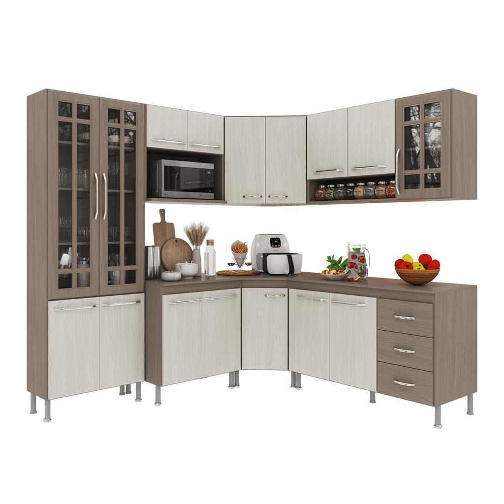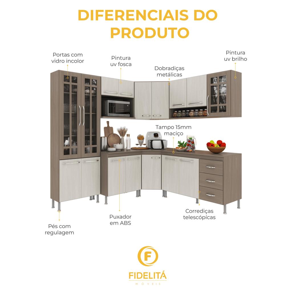 Cozinha Modulada Completa Fidelitá Paris 7 Peças 410cm 16 Portas 3 Gavetas Com Tampo Nogal/Salinas