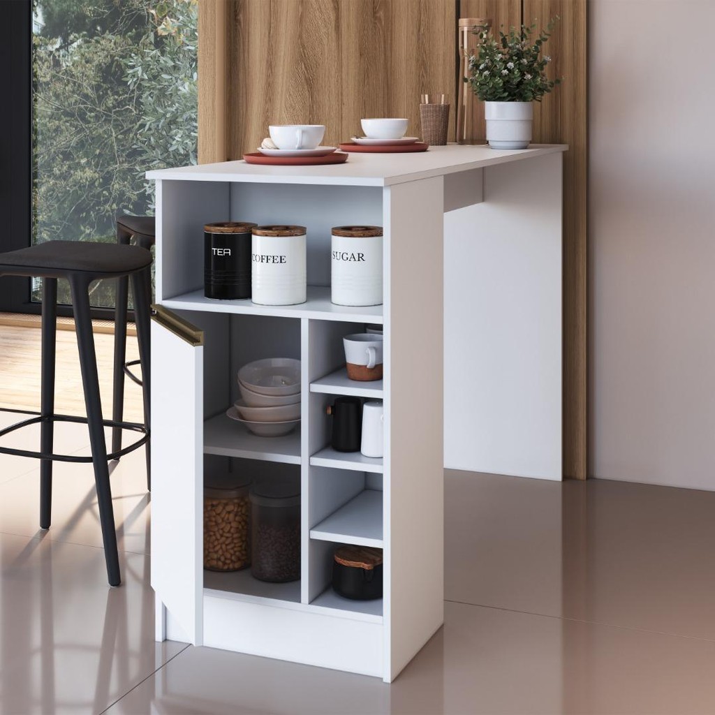 Bancada Balcão para Cozinha 140cm 1 Porta com Nichos Atenas Fidelitá Branco