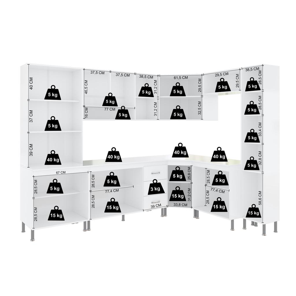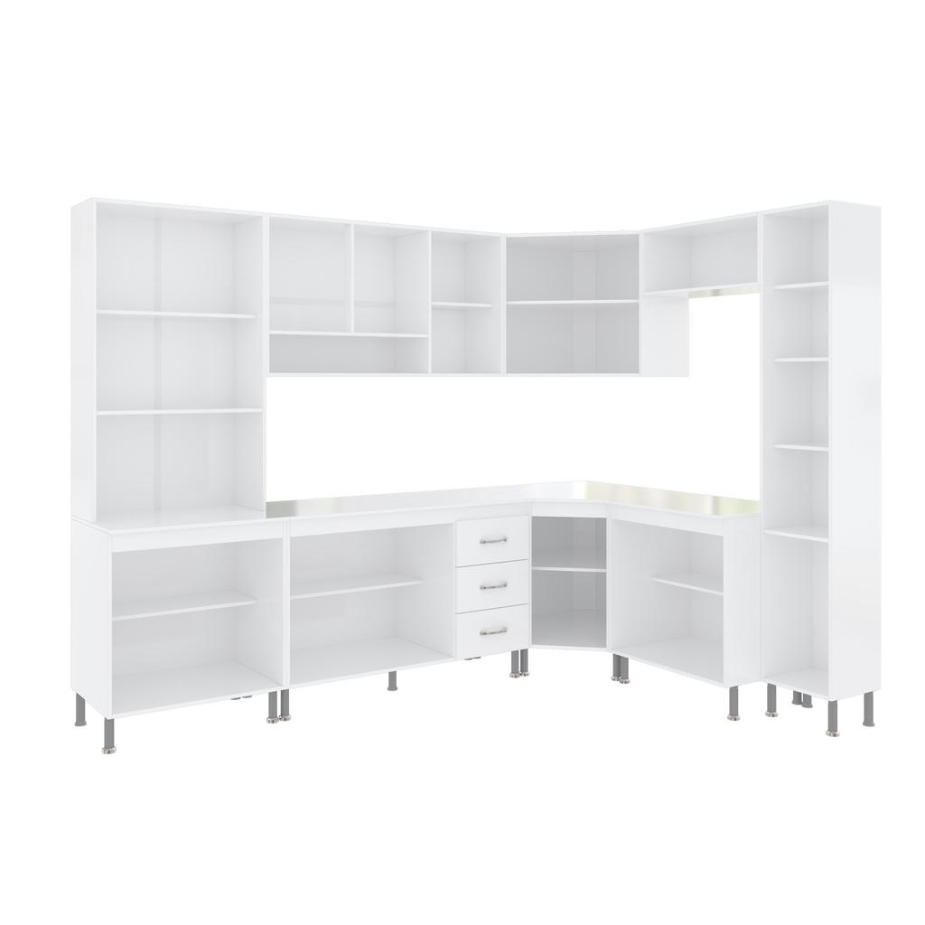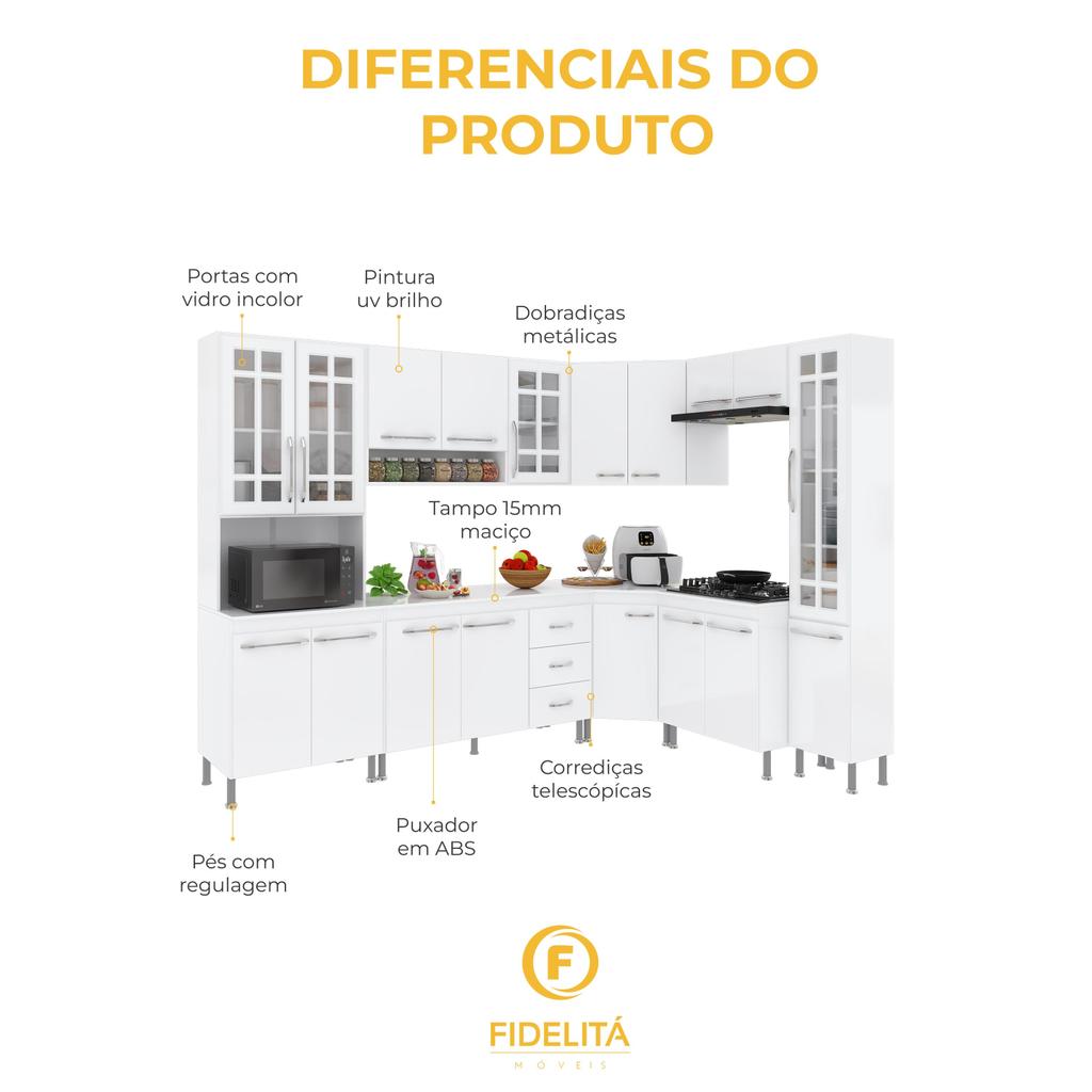 Cozinha Modulada Completa Fidelitá Viena 8 Peças 445cm 18 Portas 3 Gavetas Com Tampo Branco