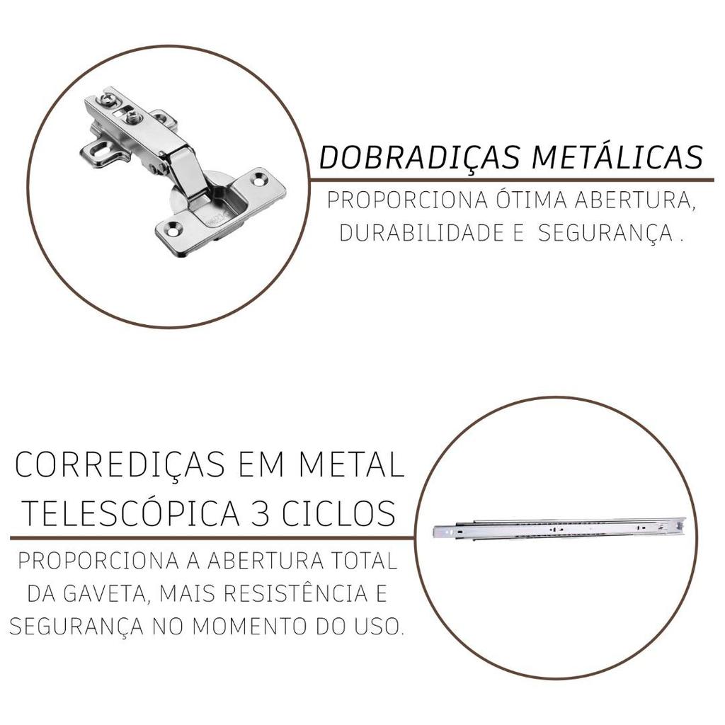 Cozinha Modulada Completa Fidelitá Lisboa 6 Peças 295cm 15 Portas 3 Gavetas Com Tampo Noce/Off-White