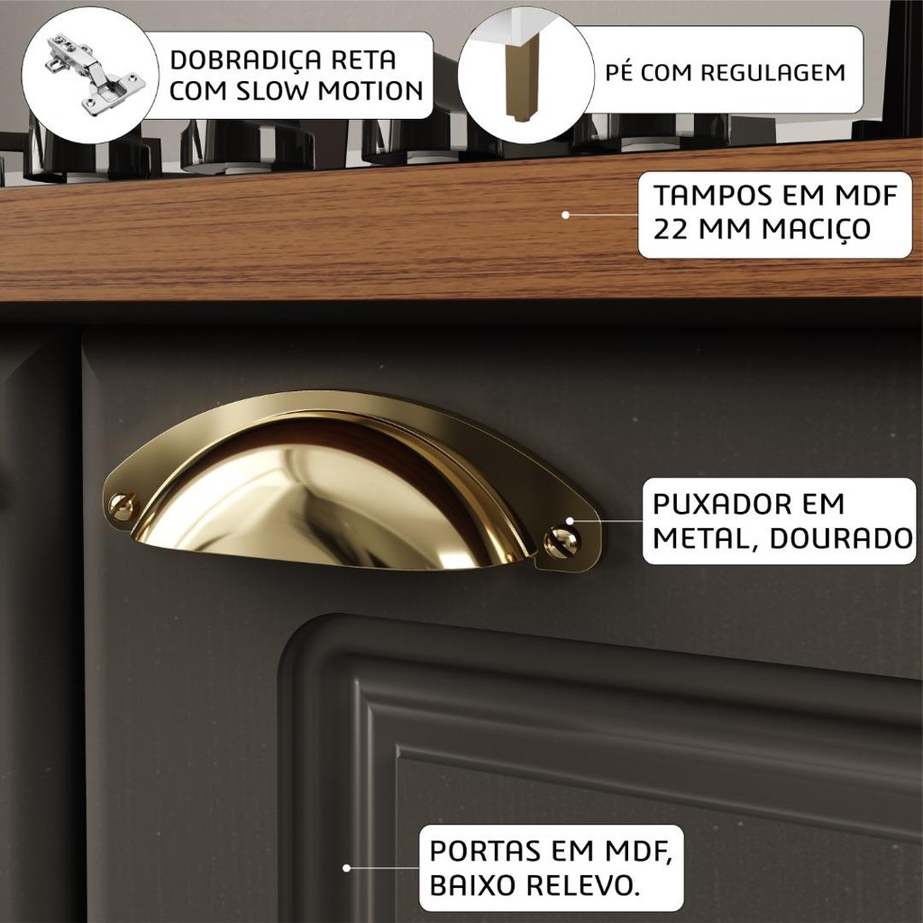 Balcão de Cozinha 80cm 2 Portas Roma Chumbo