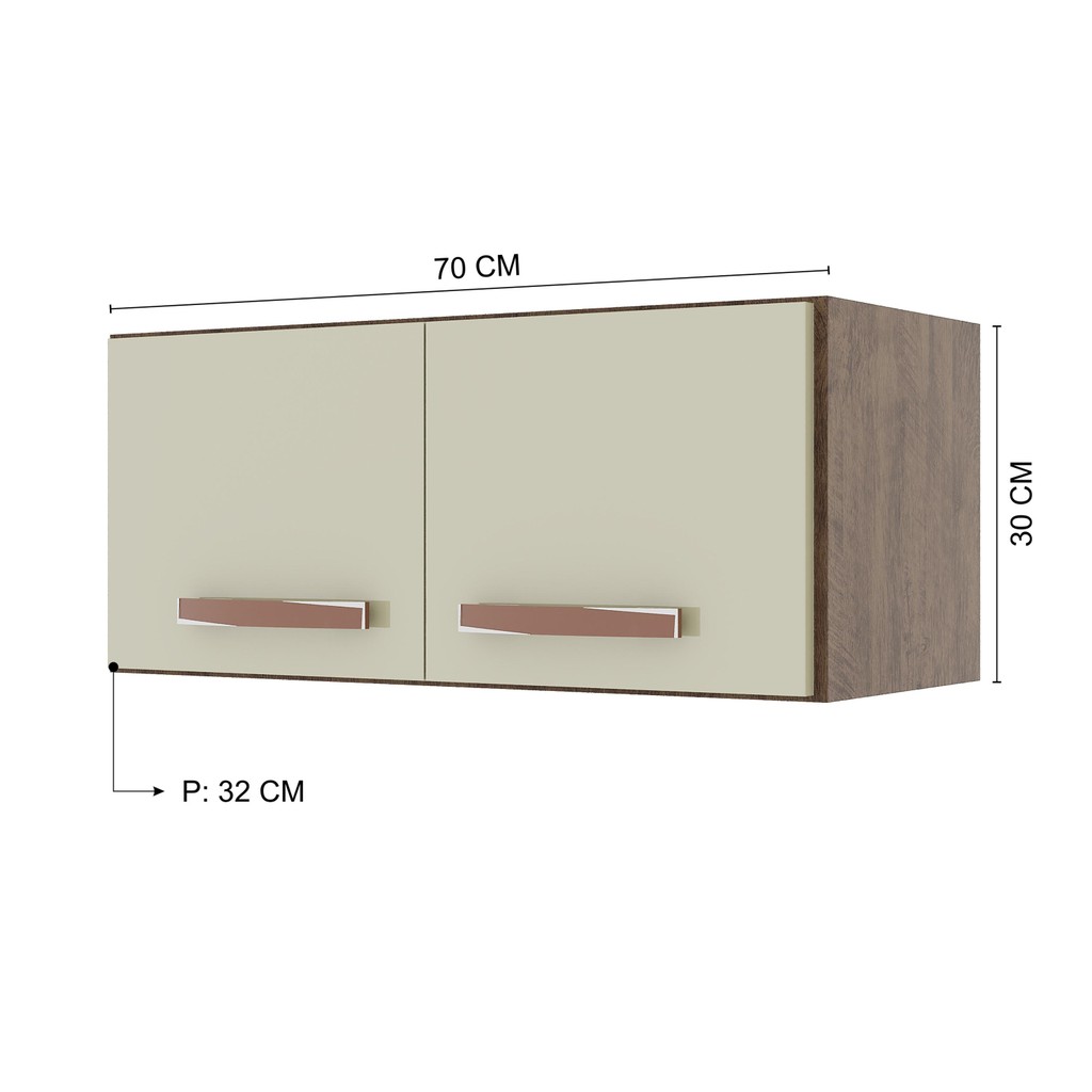 Armário Aéreo Modulado Para Geladeira Fidelitá Lisboa 70cm 2 Portas Noce/Off-White