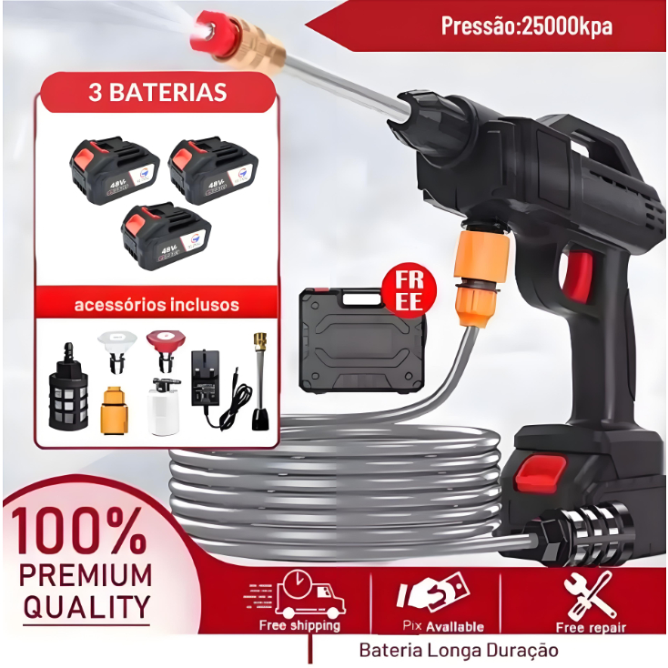 Lavadora de Alta Pressão Portátil Recarregável Para Carros E Jardins Linha Premium Pistola Lava Jato Profissional
