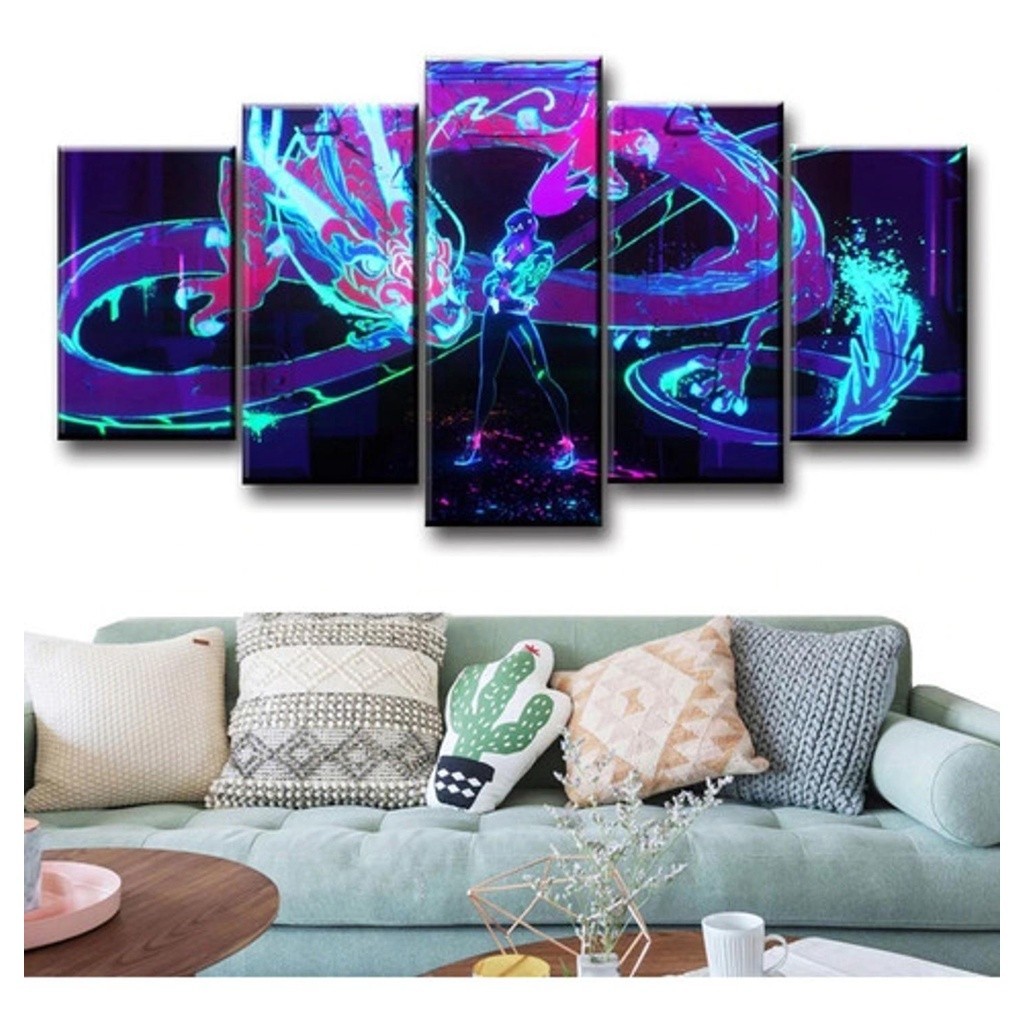 Quadros Decorativo Mosaico 5 Peças Kda Akali Lol