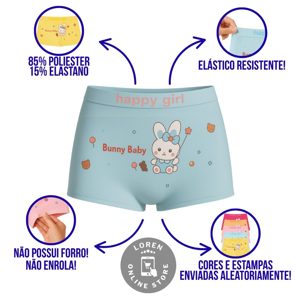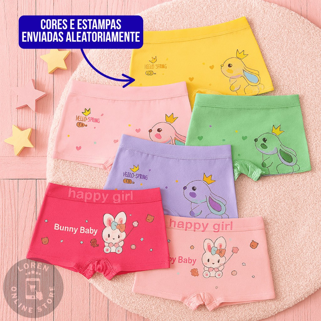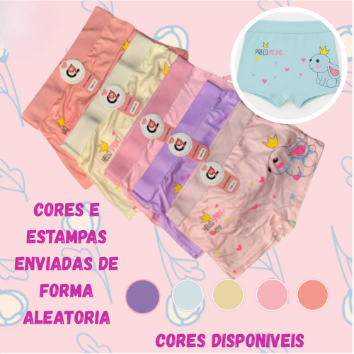 Kit Calcinhas Importada box Shortinho Infantil menina Estampada Tam 02 a 10 Anos