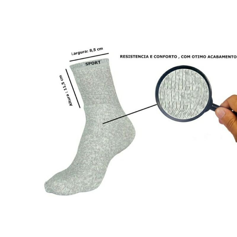 Kit 12 Pares De Meias Cano Alto Sport Masculina Feminina Unissex Algodão Sortidas Premium