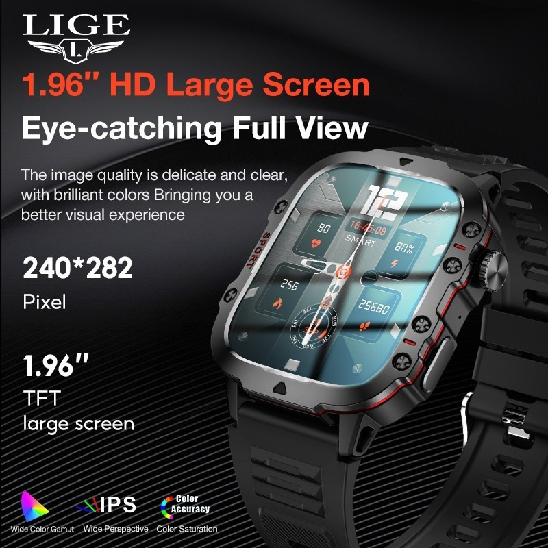 Lige Sports Watch Masculino SmartWatch À Prova D'água Bluetooth Monitoramento De Saúde Relógio Inteligente Ao Ar Livre