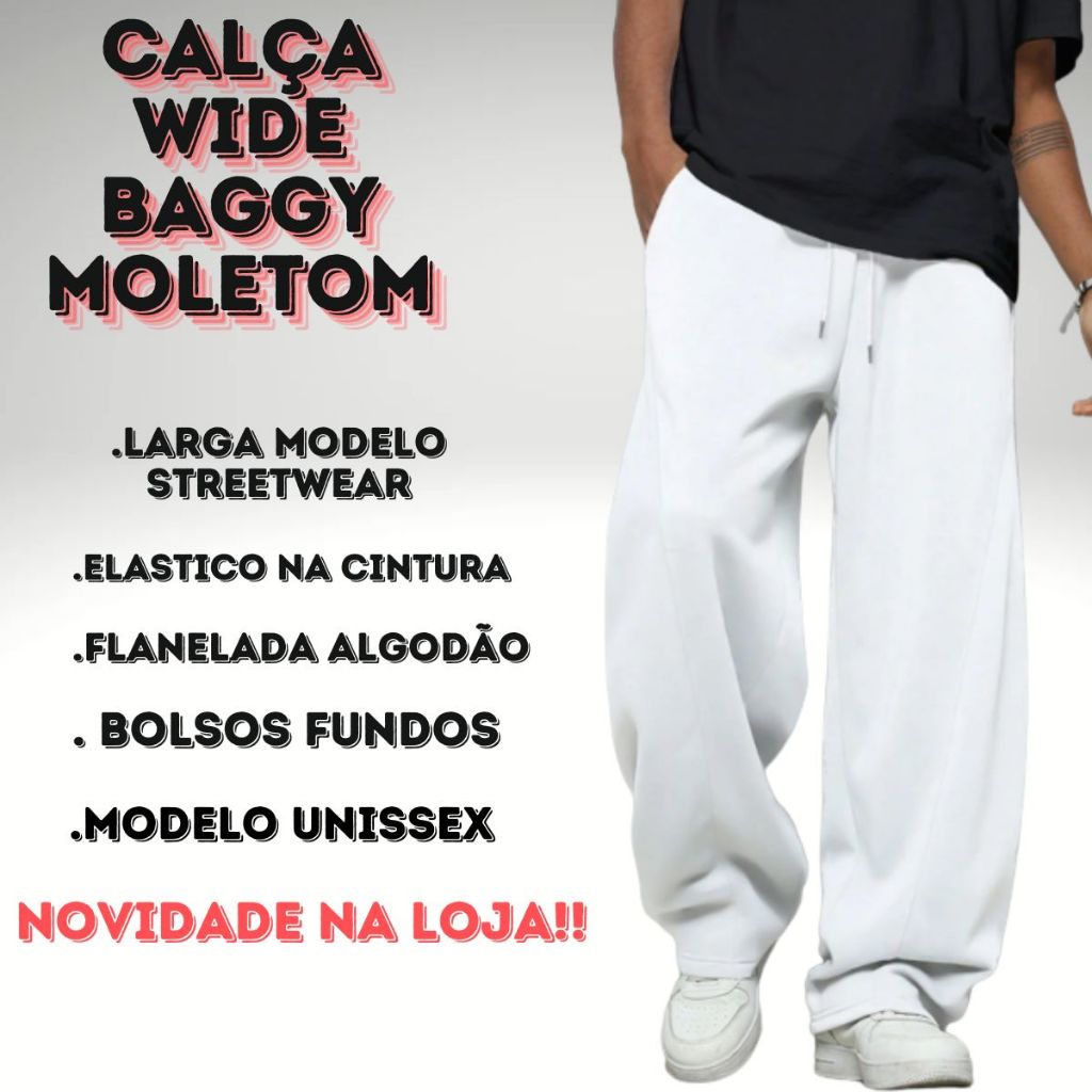 Calça Masculina Moletom Despojada Wide Baggy Barra Reta Oversized Lisa Casual Flanelada