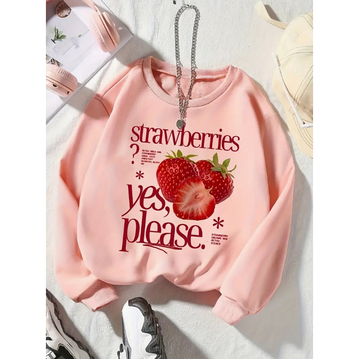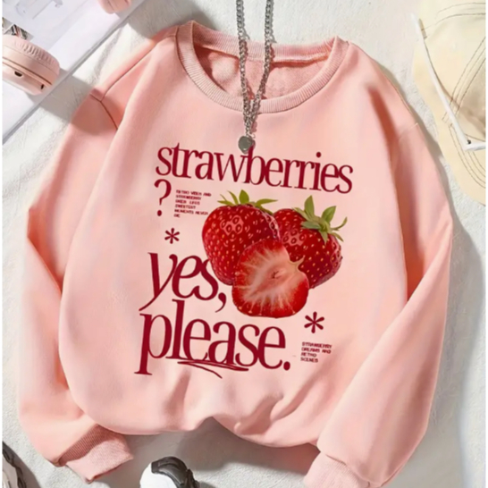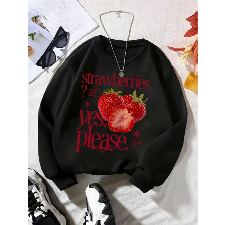 Moletom gola redonda Unissex Flanelado Inverno Confortavel Strawberries Sim Estampa Gringa Minimalista