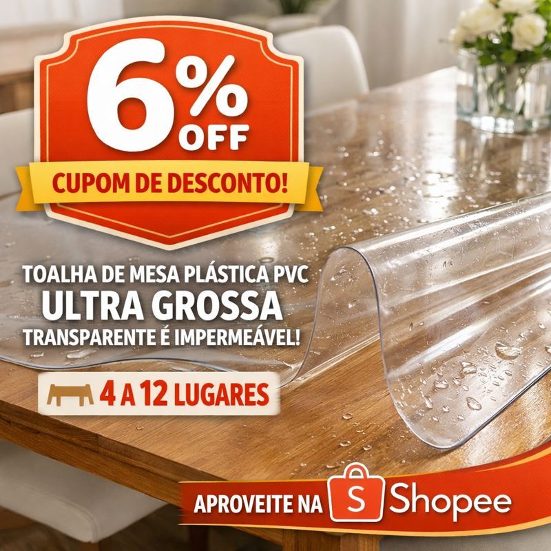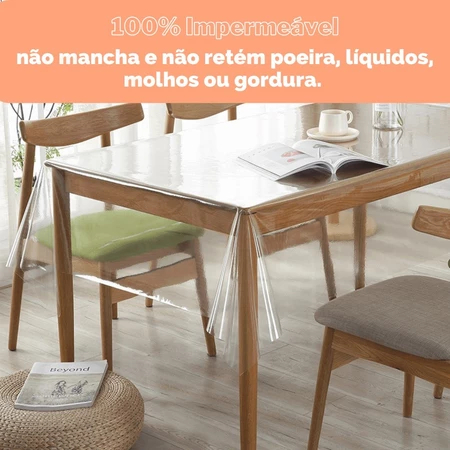 Toalha de Mesa Plástica PVC Ultra Grossa Transparente e Impermeável de 4 a 12 Lugares