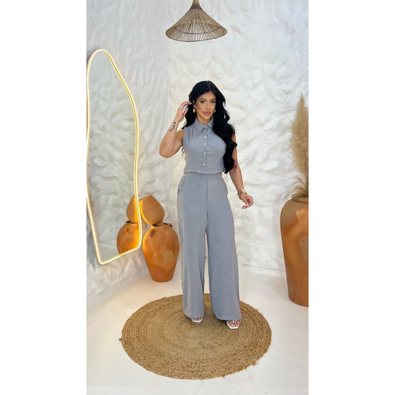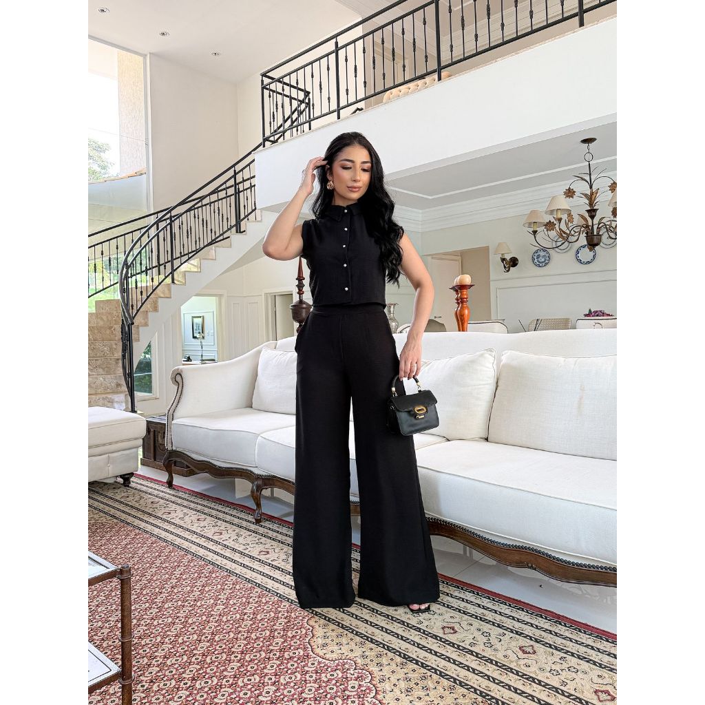 Conjunto Feminino Calça Pantalona Blusa Feminina Crepe