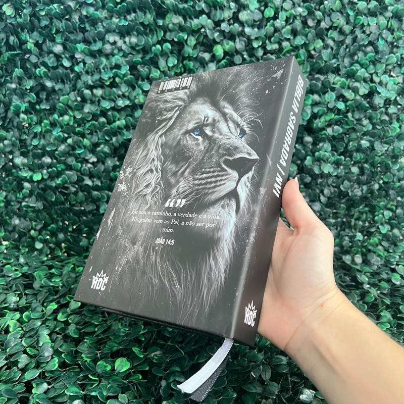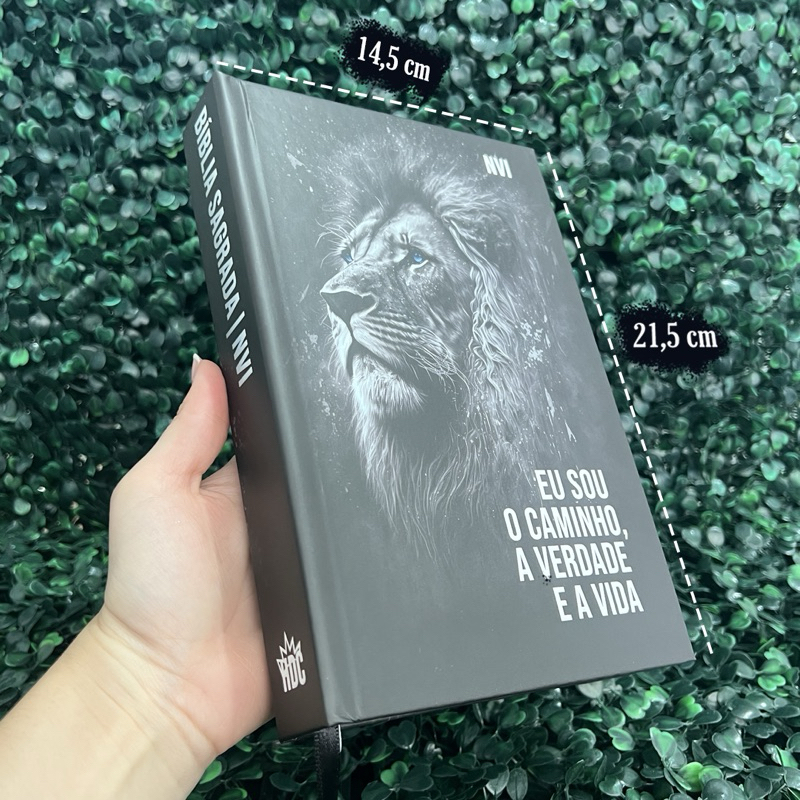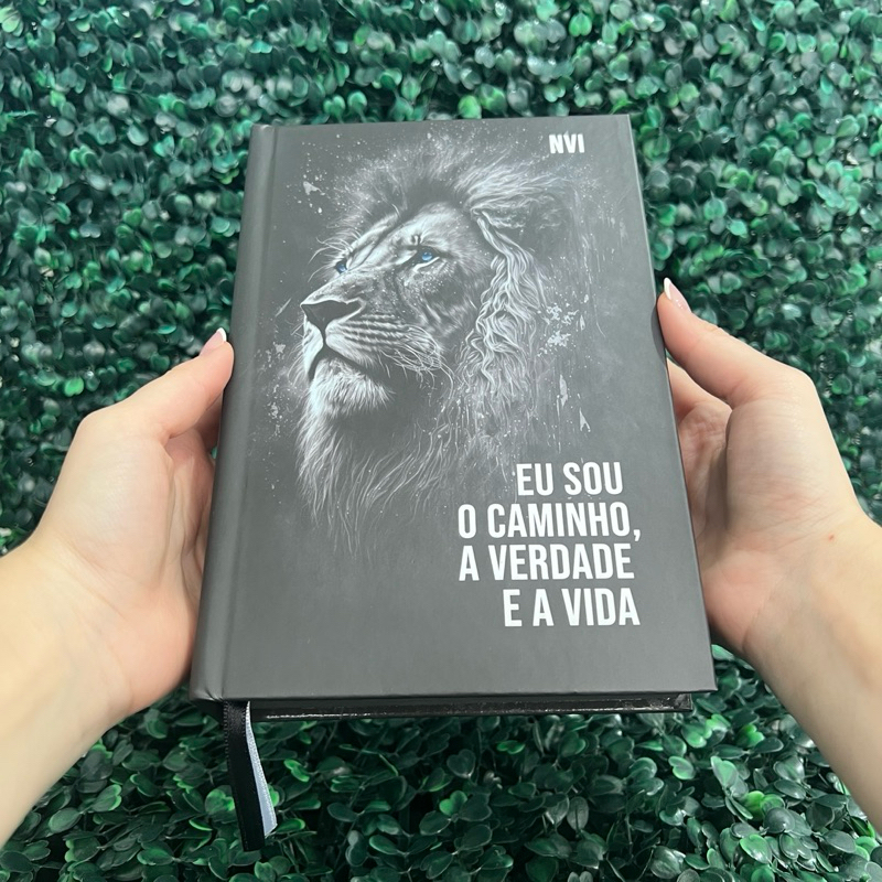 Bíblia Sagrada NVI Masculina Leão Preta Letra Média Evangélica Capa Dura Índice Jovem Fé HDC