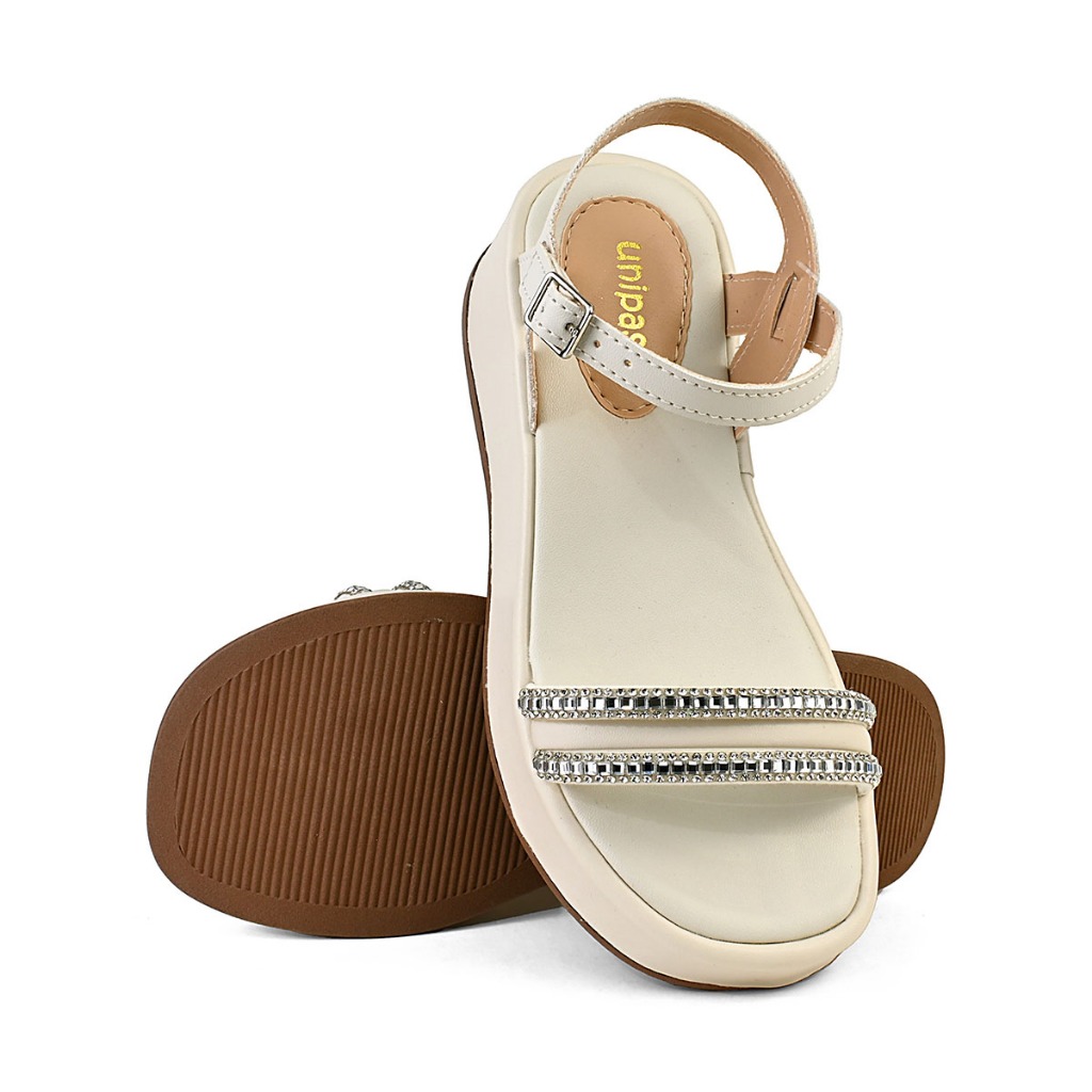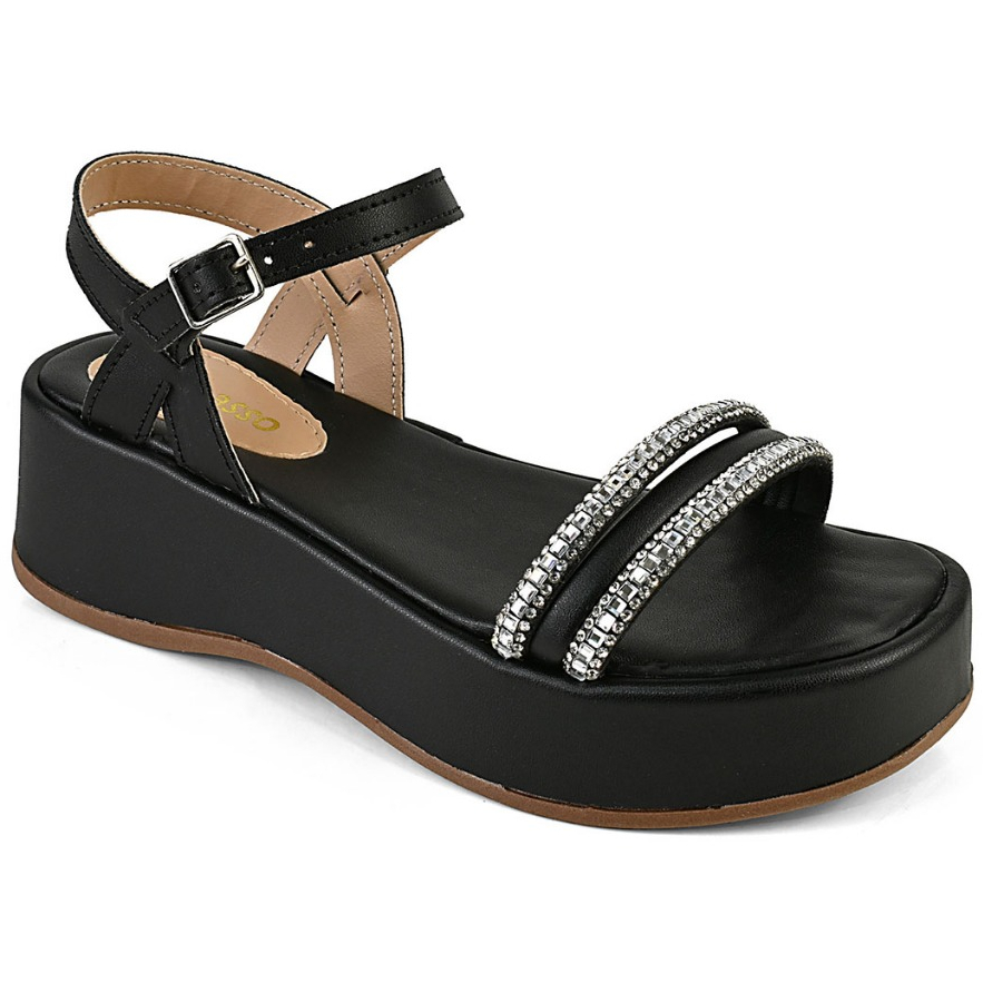 Sandália Anabela Feminina Juvenil com Strass Brilho Sola Leve Confortável Moda Casual Blogueira