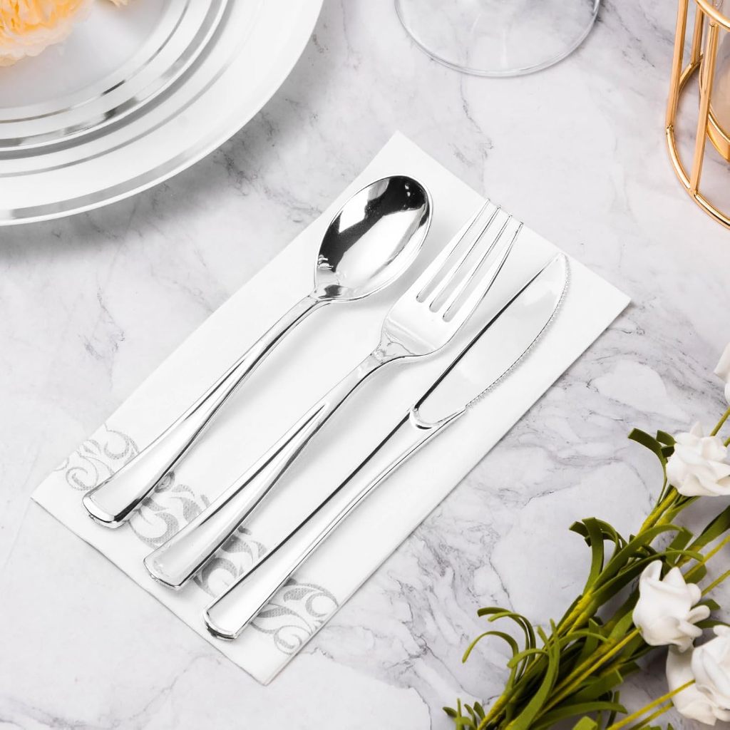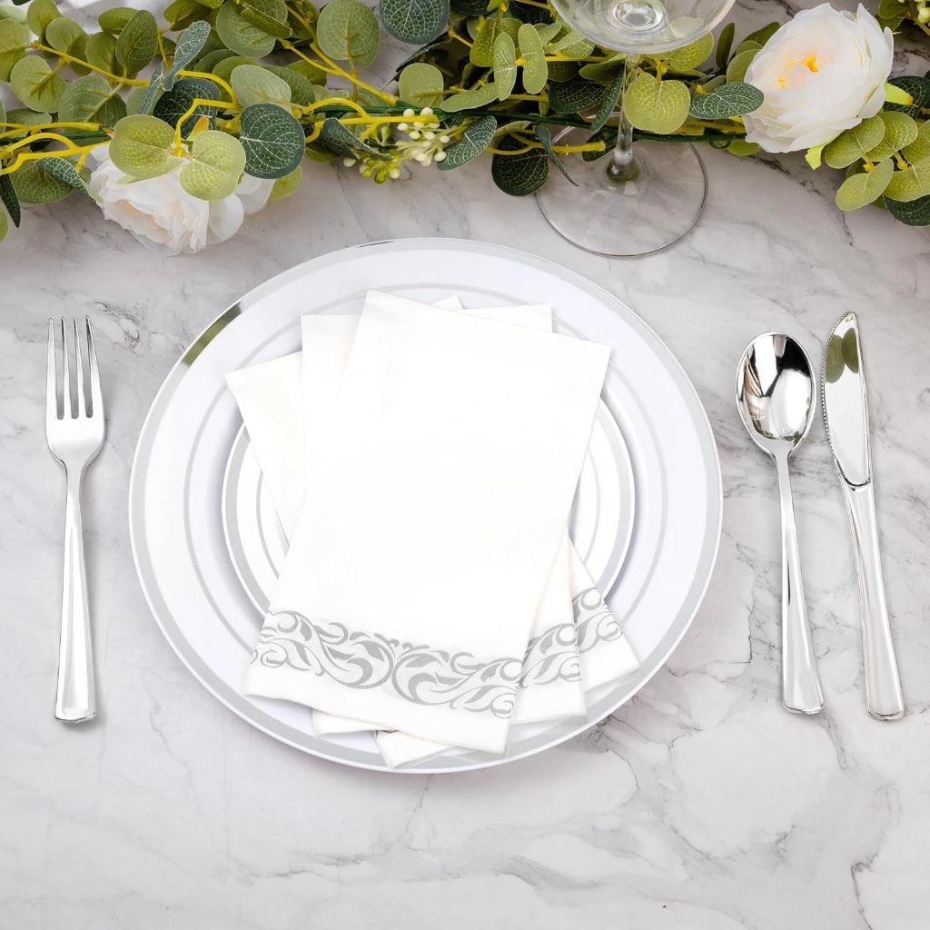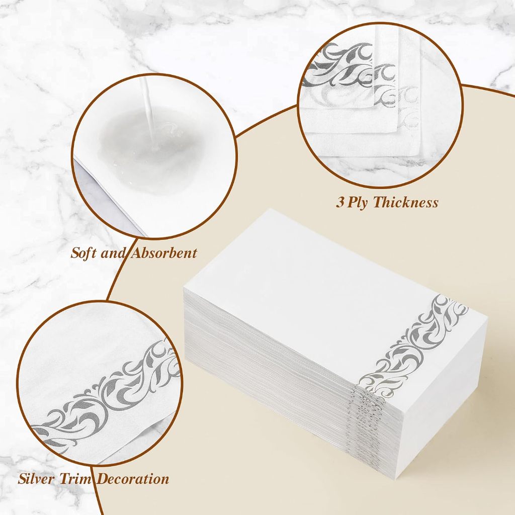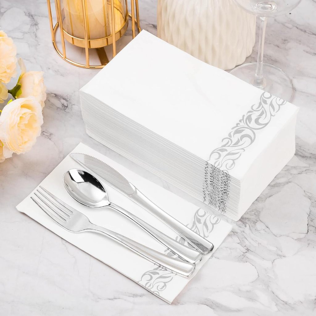 25/50 Guardanapos Prata, toalha de mão premium, guardanapo descartável de linho para festas, jantares, Livre de poeira