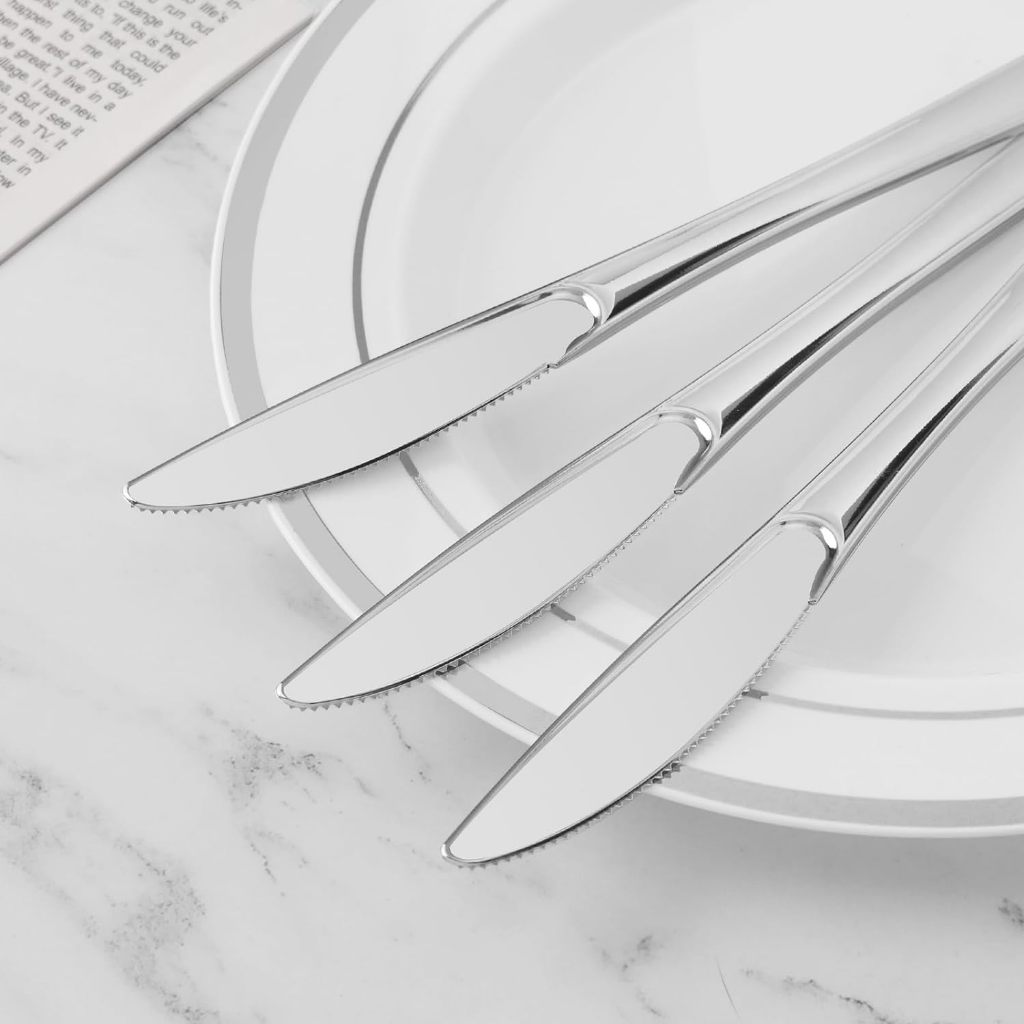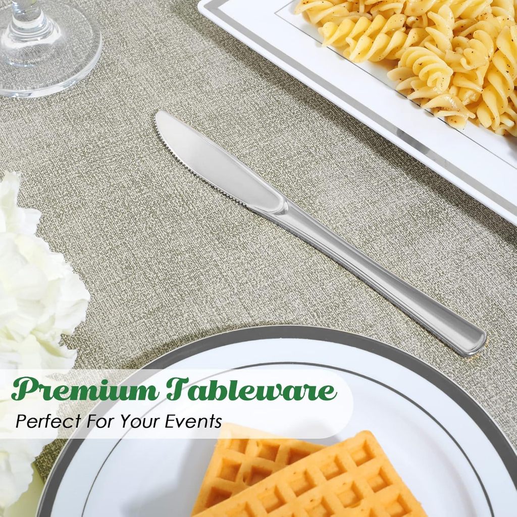 Kit 150 Talheres Luxo De Plástico De Prata, Garfos+Facas