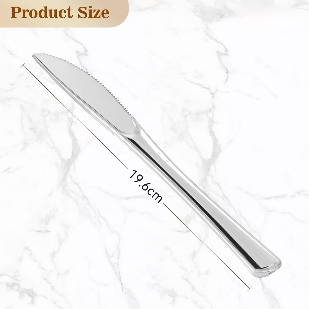 Kit 25-50 Facas Refeição 19,6cm descartáveis de luxo em plástico prata