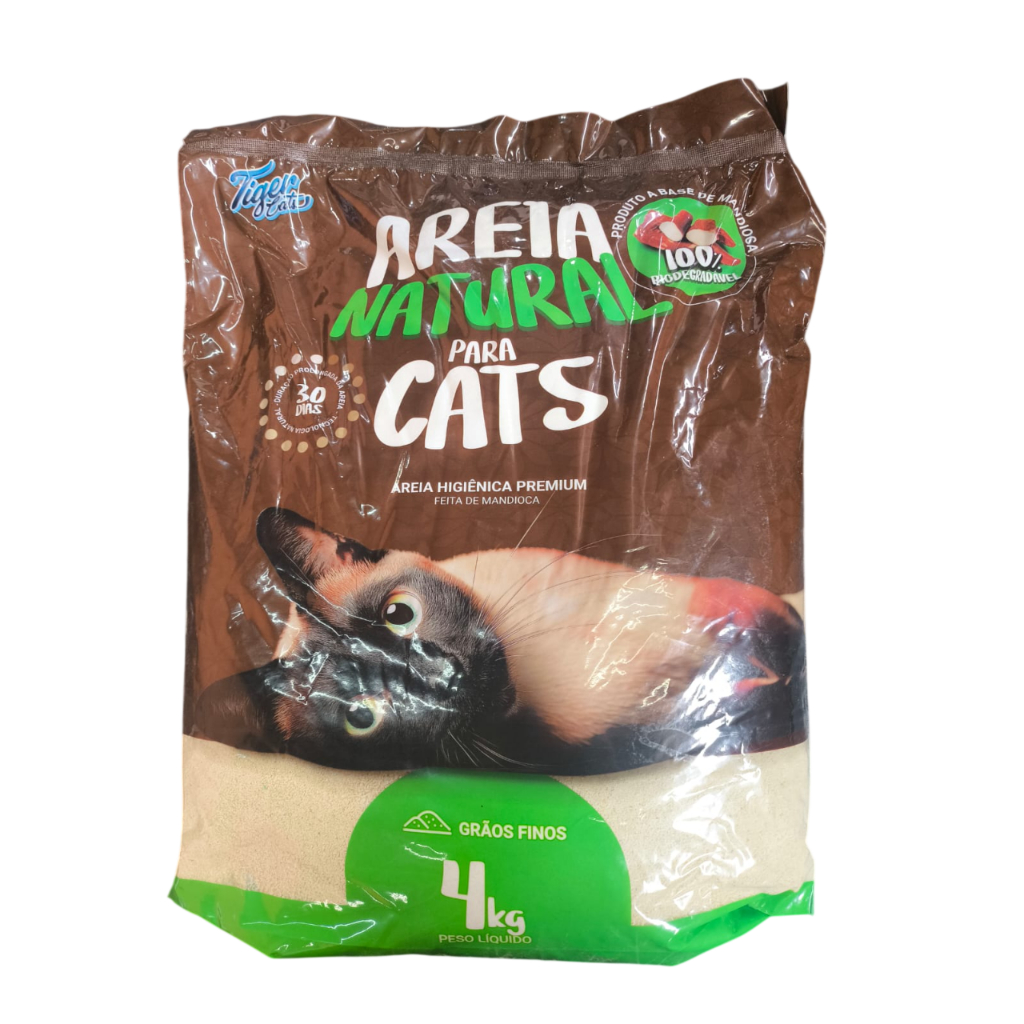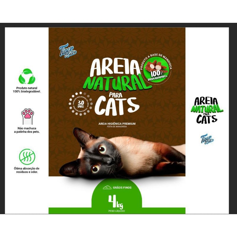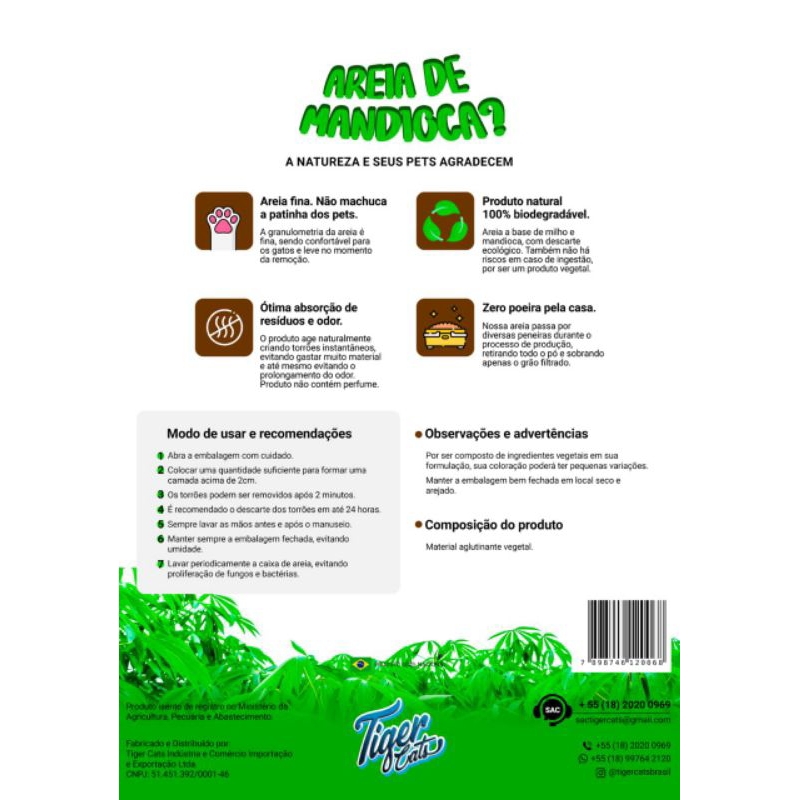 Areia Higiênica Natural Biodegradável Mandioca Para Gatos Tiger Cats Kit 16kg