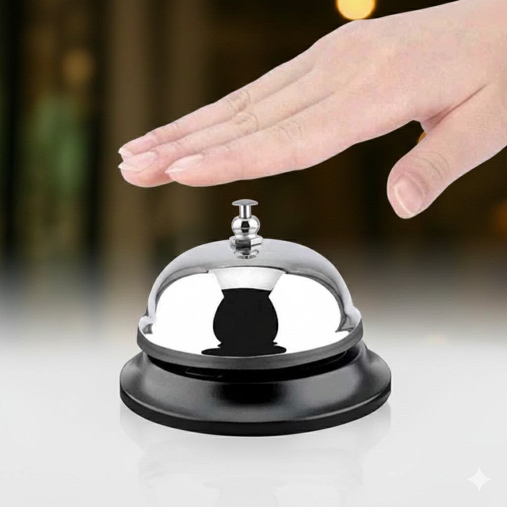 Kit Campainha de Mesa e Sino Sineta Inox Ideal Restaurantes Hotéis Lojas Escritórios Balcão Bar Garçon