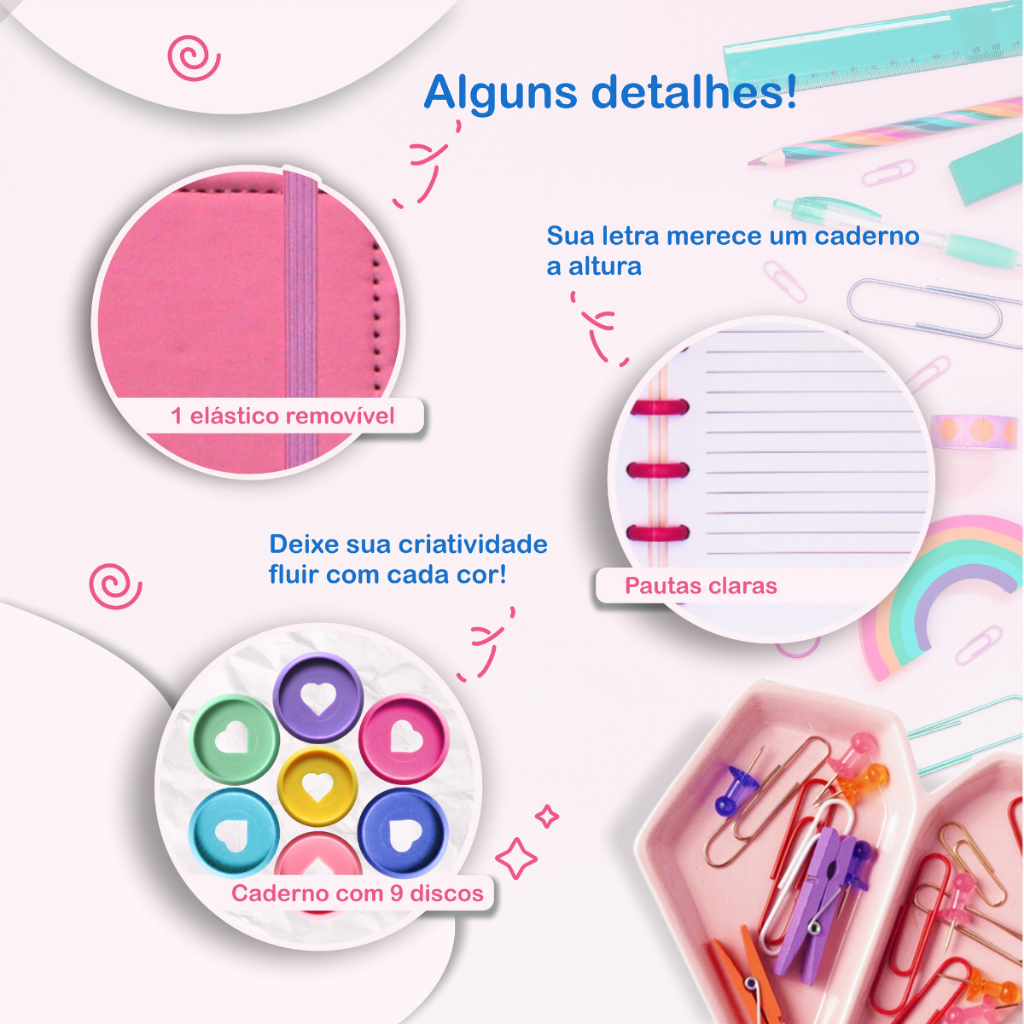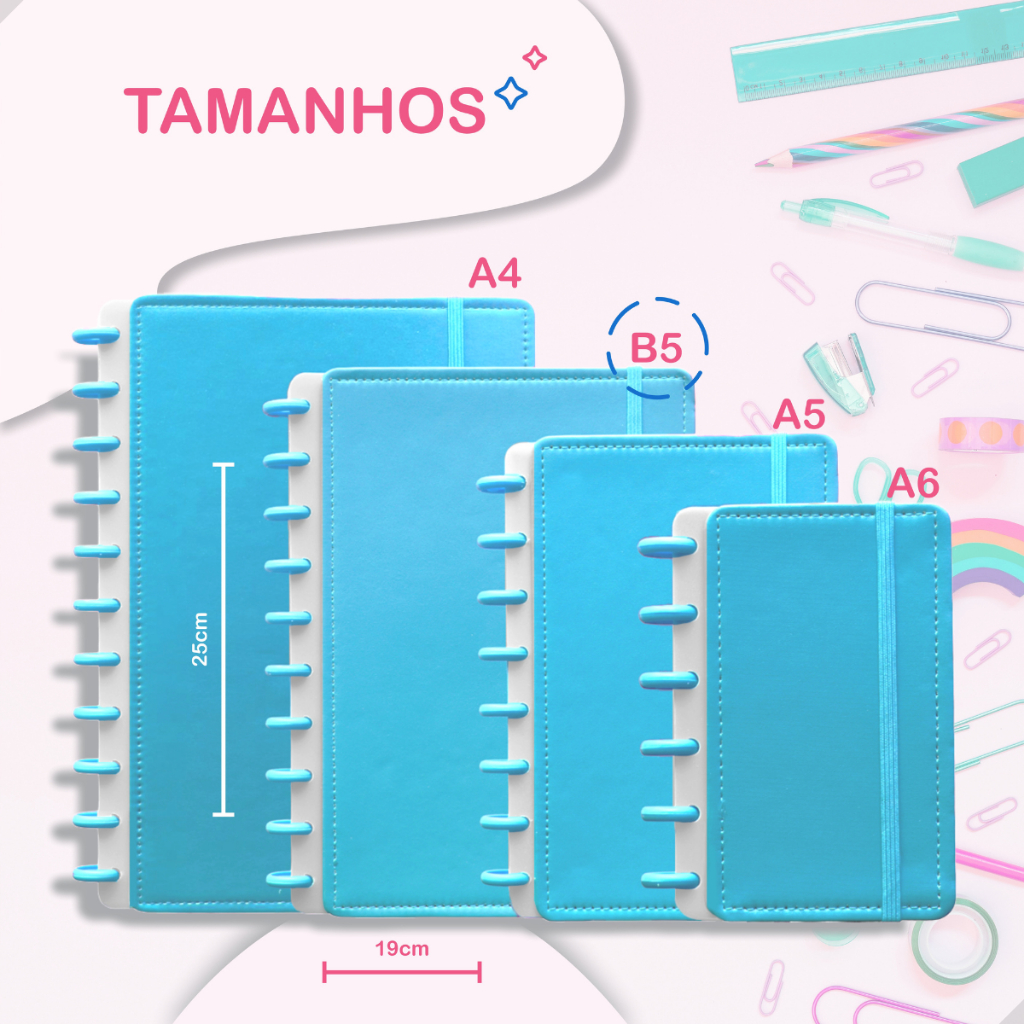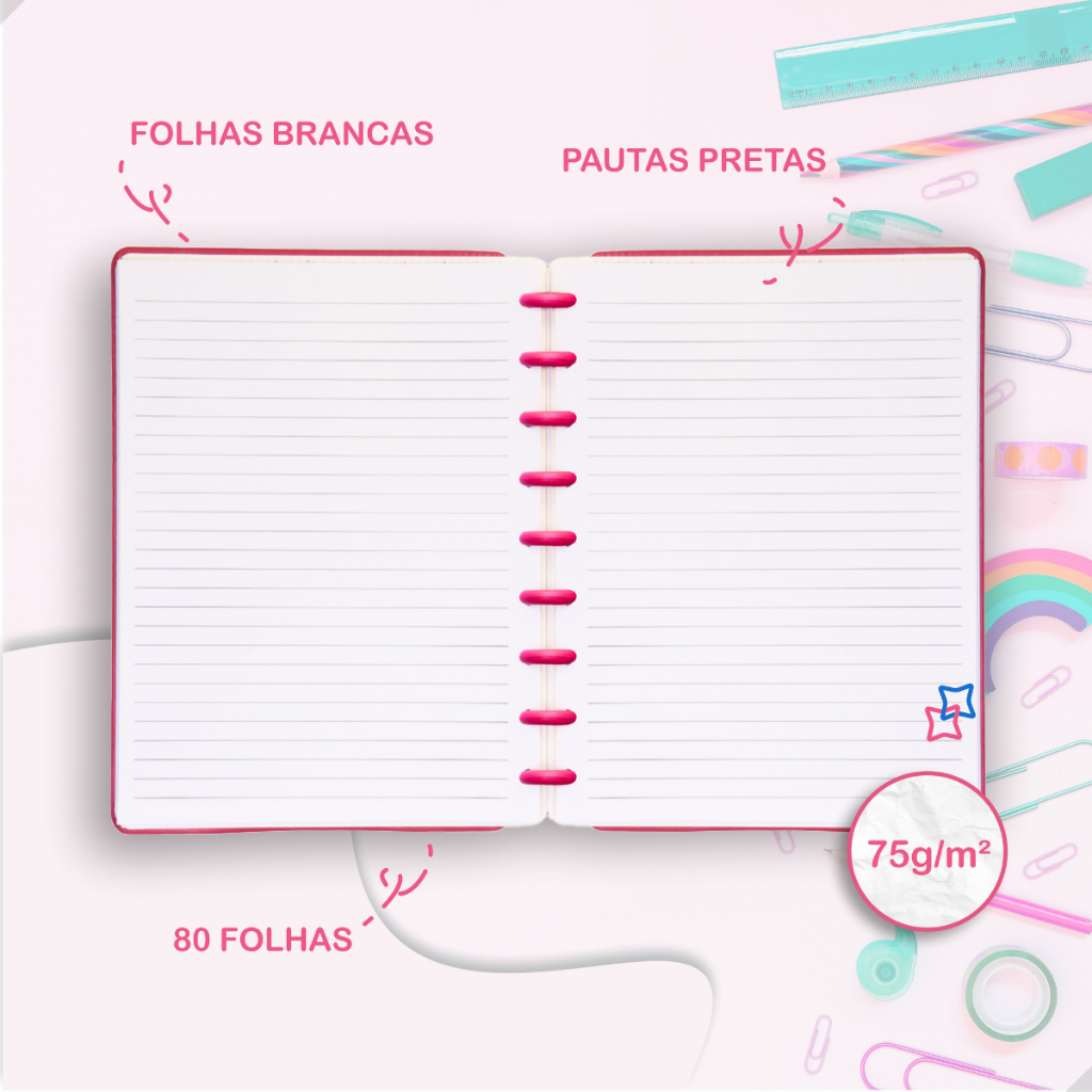 Caderno Inteligente Com 9 Discos Tamanho Médio B5 Capa Dura Com Elástico 80 Folhas Pautadas