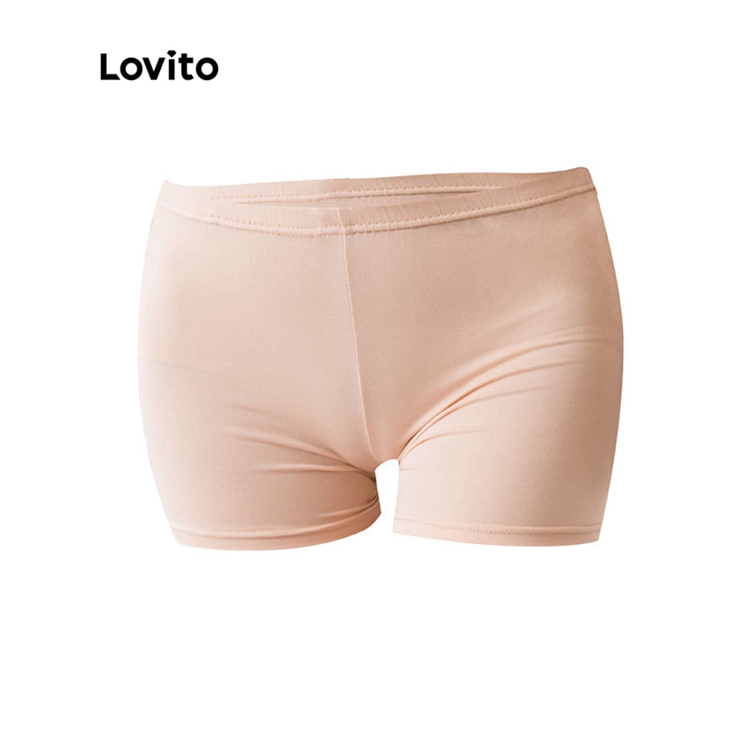 Lovito Casual Plain Calças De Segurança Para Mulheres Básicas L38ED038 (Amasco / Branco / Preto)