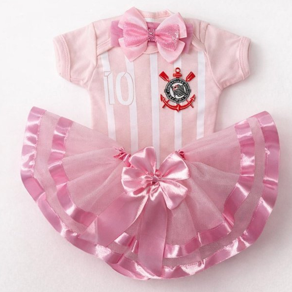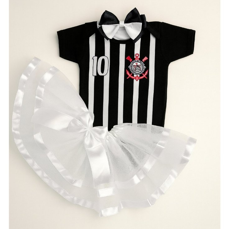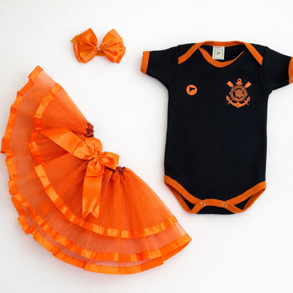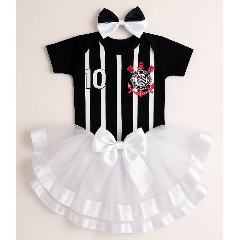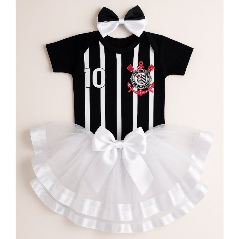 Kit Torcedor Corinthians Body Mesversário Menina com Laço e Tule de Luxo