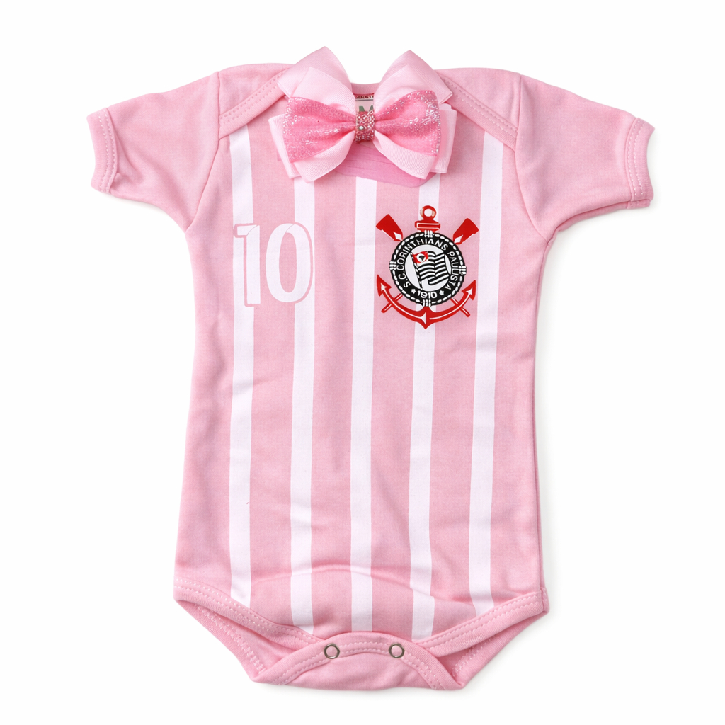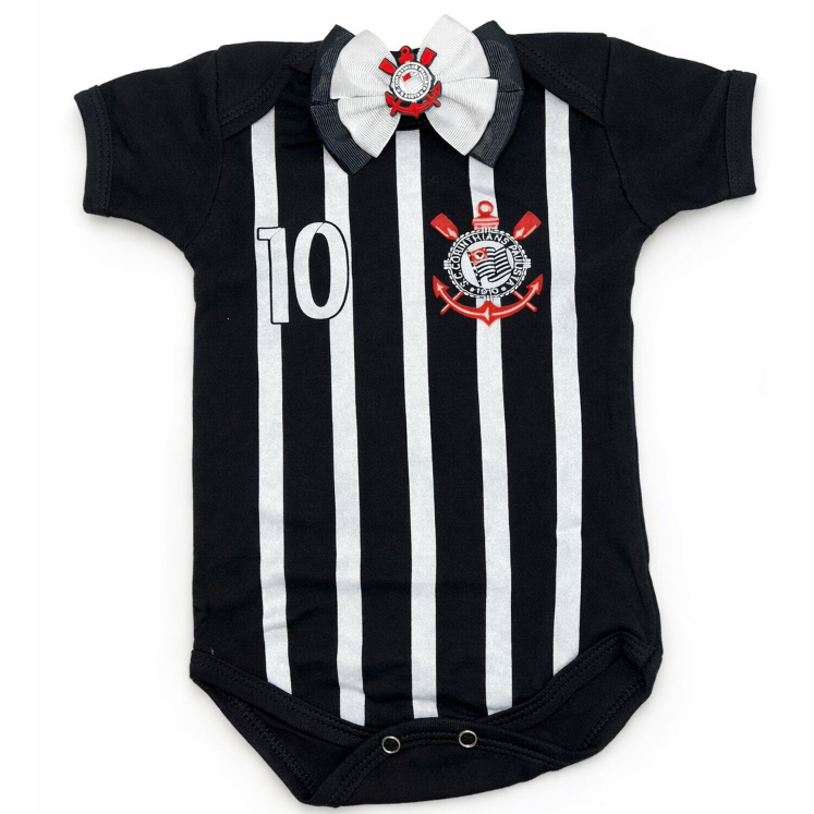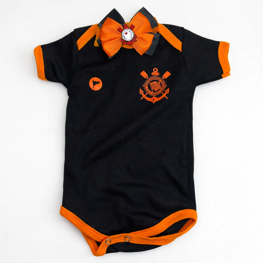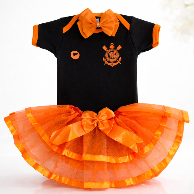 Kit Torcedor Corinthians Body Mesversário Menina com Laço e Tule de Luxo