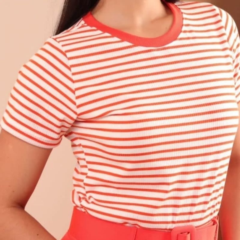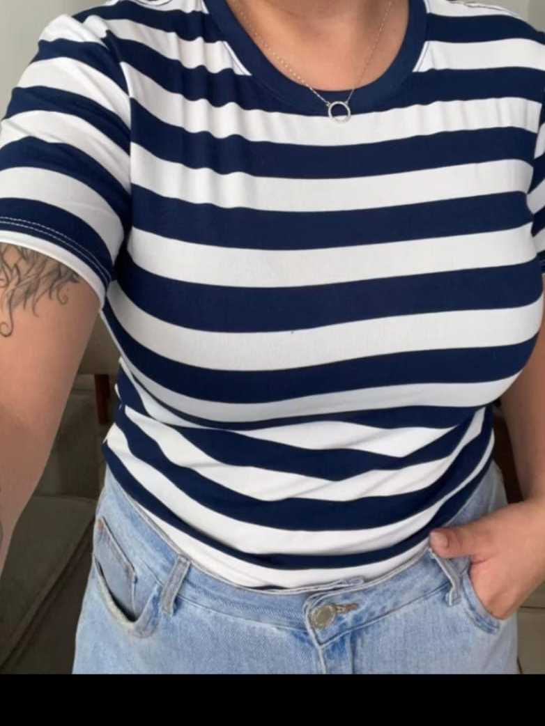 blusa feminina básico listrado tamanho P M G GG G1 G2 manga curta