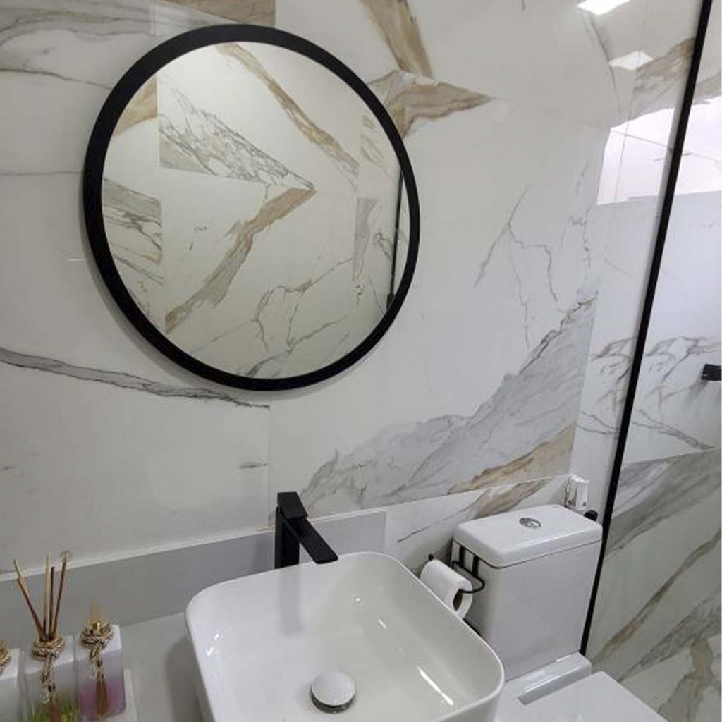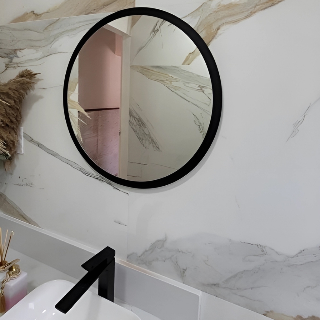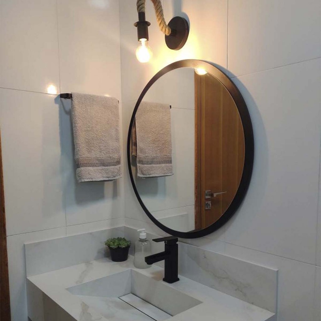 Espelho Redondo Laqueado Minimalista 70 cm + Kit de Instalação